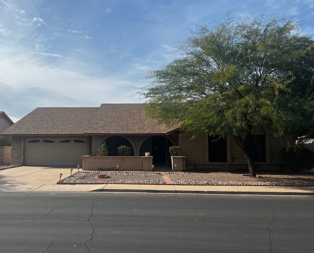 This gorgeous, and peaceful Dobson Ranch property is ready for a wonderful tenant. Excellent condition and location, spacious floor plan, 4 bedrooms and 2 bathrooms with washer / dryer/ newer appliances including refrigerator, dishwasher and trash compactor. Gas oven and plenty of storage. 2 car garage and driveway, clean and simple landscaping, with ring and other great features. There is a community pool and club area. Tons of walkability with lovely surroundings.