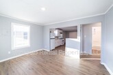 This move-in-ready apartment features fresh neutral paint, stylish wood-look flooring, and plush carpeting throughout. The spacious eat-in kitchen is equipped with ample white cabinetry, dark stone-patterned countertops, a large black refrigerator, and a stainless steel gas range. In the bedroom, you’ll find a dedicated closet, a modern ceiling fan, and a wall-mounted mini-split AC system for personalized climate control. The updated bathroom includes a contemporary vanity with sleek black hardware and a bright LED light bar. Additionally, the property provides a large covered carport for convenient shaded parking.