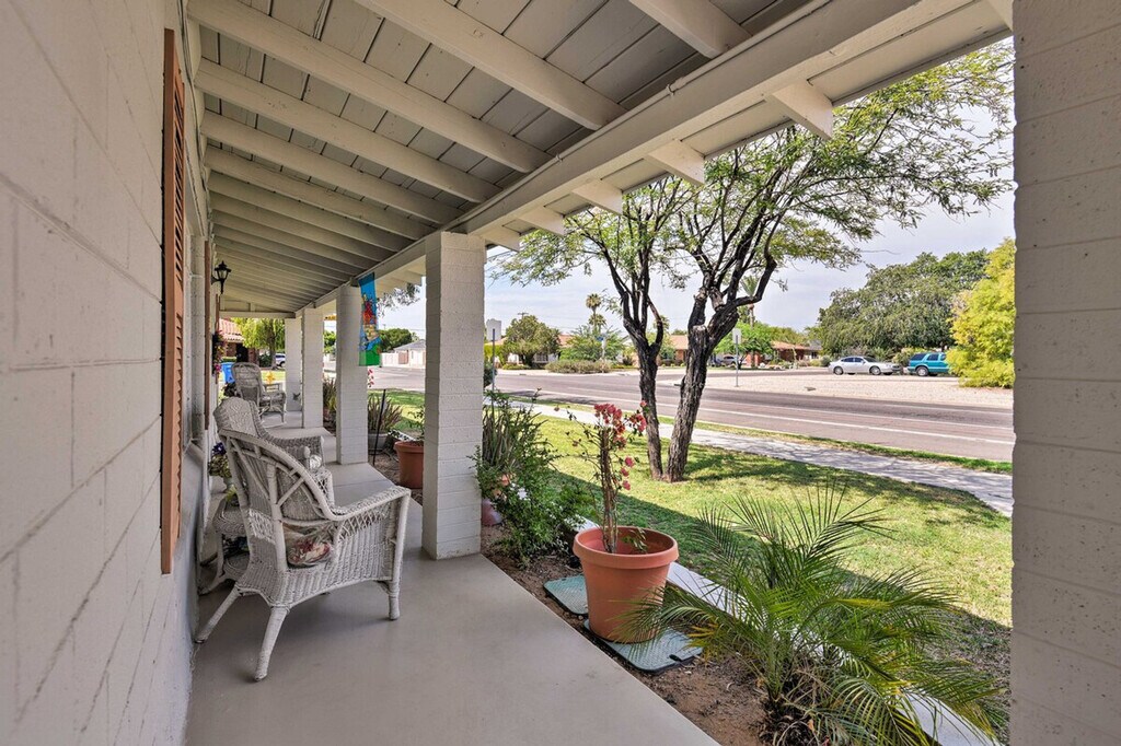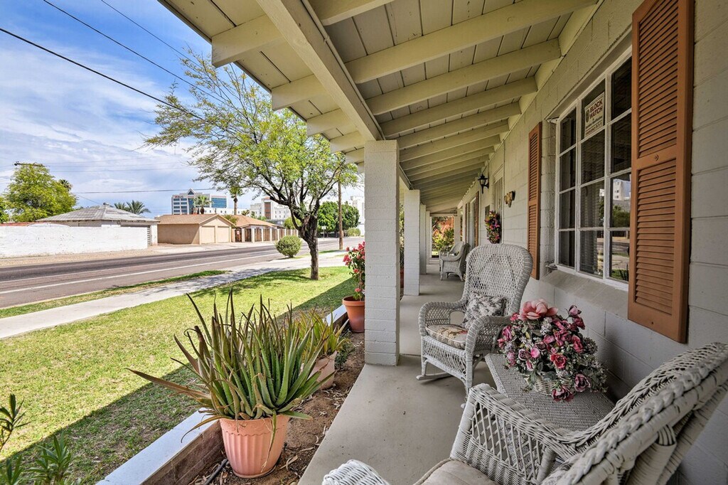 Capture the essence of Phoenix at this vacation rental in the Willo Historic District! Feel at home in this 2-bedroom, 1-bathroom home. This 1,125-square-foot home is well appointed with a fully equipped kitchen, a 50-inch flat-screen TV, plush furnishings, a Keurig coffee machine, cooking essentials, a water cooler, on-site washer/dryer, linens/towels, free Wi-Fi, and central air conditioning. This property is pet friendly with a $50 fee for one dog only (max 20 lbs). All of Phoenix is at your fingertips at this centrally located home, perfect for a family getaway, extended stay, or a couple's retreat to the Valley of the Sun! Situated in the heart of Phoenix, this property is just 2.2 miles from Comerica Theatre, 2.7 miles from Talking Stick Resort Arena, 2.9 miles from Chase Field, and only a short drive away from Scottsdale area attractions. Exterior security cameras are around the perimeter, facing out, but they do not look into any interior spaces. This home is a historic property protected by the city and cannot be changed, only restored; with that being said, everything is in working order. [SI]