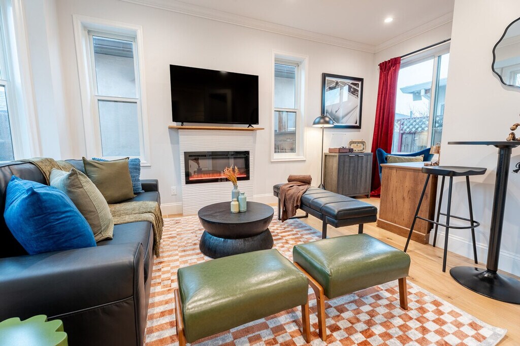 Enjoy a stylish experience at this centrally located home, a peaceful retreat just minutes from Palo Alto, Menlo Park, Stanford, and top tech companies. Newly renovated in 2023, this fully electric home features natural light, high ceilings, modern finishes, a cozy electric fireplace, in-unit laundry, and three full bathrooms. There is one dedicated parking spot in the driveway for guest use. Complimentary cleaning and supply restock are offered for stays of 30+ days. This home is perfect for corporate travelers and families seeking comfort, style, and convenience in Redwood City. No parties are allowed. [SI]