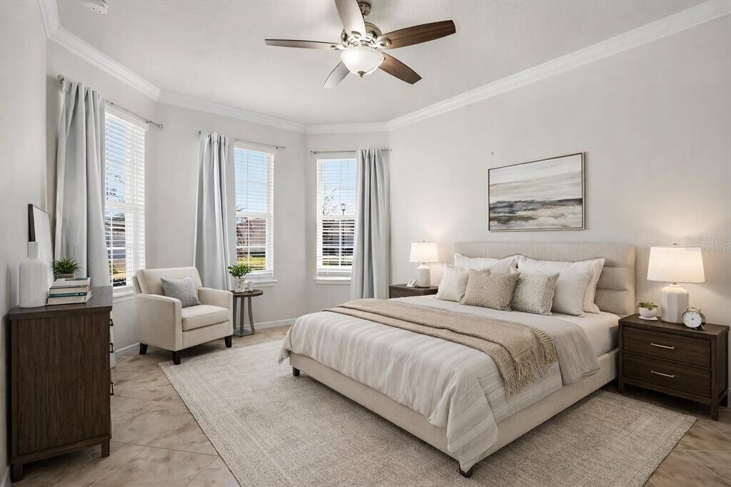 One or more photo(s) has been virtually staged. Beautifully Designed Turn-Key home in a Premier 55+ Community! Welcome to 2732 Ruby Rose Lane,a stunning residence nestled within the highly sought-after Del Webb Sunbridge community. This meticulously maintained,turn-key Mystic floor plan is one of the larger models offers 1919sf and blends modern elegance with everyday comfort,creating the perfect sanctuary for those ready to enjoy both relaxation and an engaging lifestyle. Constructed in 2021,this floor plan provides a spacious,open layout with two bedrooms,two bathrooms,and a rare three-car tandem garage that offers ample space for both vehicles and storage. Upon entering the home,you'll be immediately impressed by the stylish porcelain tile flooring that flows seamlessly throughout the entire space,enhancing the sense of openness and sophistication. The home has been thoughtfully upgraded with crown molding,ceiling fans in every room,and a high-capacity washer and gas dryer to add convenience to your daily life. A gas tankless water heater ensures you always have hot water when you need it,and the home is designed to maximize comfort with every detail carefully considered. For allergy sufferers,the UV light for the AC is a great addition,helping to reduce allergens and provide a healthier environment. The guest bedroom is perfectly located at the front of the house,providing privacy for both guests and homeowners. It offers generous space for visitors,with the flexibility to accommodate a desk or exercise equipment. Just outside the guest bedroom is a full bathroom and a linen closet for additional storage. There’s also a versatile room near the foyer that could serve as a third bedroom or a home office,allowing you to personalize the space to fit your needs. The home's practical drop zone provides easy access to the garage,and a large laundry room ensures that storage is never an issue. The heart of this home is its expansive living room,which flows effortlessly into the well-appointed kitchen. Perfect for those who love to cook and entertain,the kitchen features sleek granite countertops,top-tier appliances,a beautiful tile backsplash,and a large closet pantry. Whether you’re hosting dinner parties or enjoying a quiet meal,the adjacent dining area provides the ideal space for both. Sliding glass doors open up to an oversized screened-in patio that extends your living space outdoors. This serene outdoor area overlooks the meticulously landscaped backyard,offering the perfect setting for relaxation,dining,or grilling with friends. The private primary bedroom offers a peaceful retreat to unwind at the end of the day. The ensuite bathroom is a luxurious escape with a glass-enclosed tiled shower,a double-sink vanity,a dedicated makeup area,and a spacious walk-in closet. For additional storage,the attic can be easily accessed via a pull-down ladder in the garage. This home offers a unique opportunity to enjoy a sophisticated lifestyle in a warm and welcoming neighborhood. As part of the exclusive Del Webb Sunbridge community,this home provides access to a wealth of amenities designed for active adults. With a 27,000 sq. ft. clubhouse,two pools,tennis and pickleball courts,fitness center,the Sabal Tavern Restaurant & Bar offers great food and a variety of community activities,there’s always something to do. This home is not only a peaceful retreat but conveniently located to Orlando Airport,Lake Nona,nearby dining and shopping. MLS# O6388610