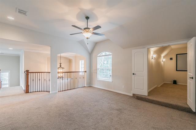 SHORT TERM LEASE OPTIONS AVAILABLE! Welcome to this beautifully maintained home offering an open layout with luxury vinyl plank flooring, fresh neutral paint, crown molding, plantation shutters throughout and a recently updated kitchen. Enjoy a spacious family room with a soaring stone fireplace and tons of natural light. The private study and formal dining room sit just off the foyer. The primary suite boasts a tray ceiling, spa-like bath with split vanities, oversized shower, jetted tub, and walk-in closet. Upstairs are 3 bedrooms, 2 full baths, a game room, and a fully equipped media room with bonus attic storage! Outside relax under the extended covered patio with ceiling fan, and built-in seating—all surrounded by lush landscaping and a beautiful Zoysia lawn. Major updates include: 2024 roof & gutters, 2 new HVAC units, tankless water heaters, water softener, 8-ft fence, and more! The home sits across from a Corps of Engineers greenbelt and is close to Trophy Club’s Independence Park with a pool and splash pad, as well as the Trophy Club Dog Park! This is a special property that’s fully move-in ready.