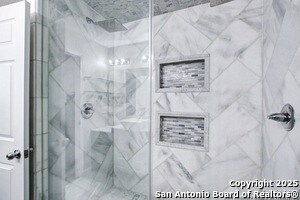 Welcome to this impeccable 3 bedroom, 2.5 bath home in the highly desired area of Ridge of Silverado Hills. Enjoy the open floor plan and high ceilings that boast beauty and elegance. Attention to detail was not spared throughout this completely updated home with updated kitchen including an oversized island and faux stone cabinet overlay, quartz countertops, marble finishes, game room with mounted anchors for an indoor swing, projection TV, custom built desk nook, master bath features Carrera Italian marble with double rainfall shower heads, water proof flooring in laundry room, solar panels (paid off) and electronic doggy door. You'll find a private covered pergola in the backyard