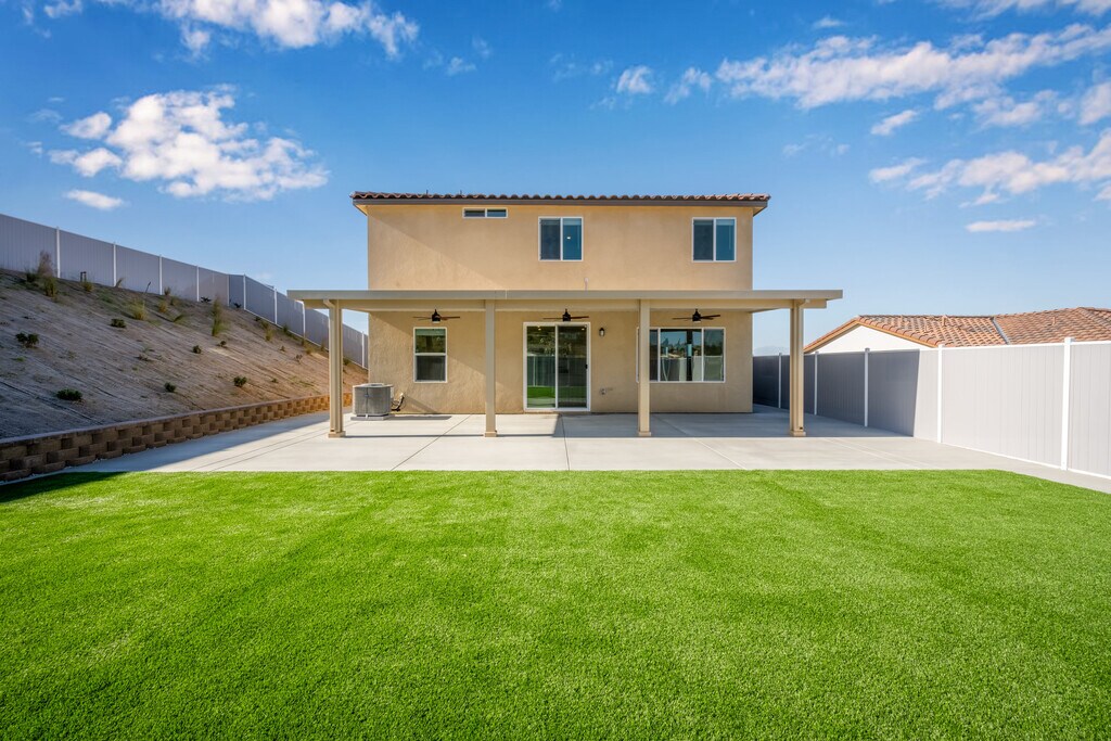 Welcome to your dream home in the brand-new Monteverdi neighborhood in beautiful South Corona. This is your opportunity to be one of the very first tenants in this highly anticipated community. This stunning, newly constructed home offers 5 spacious bedrooms, 3 baths, and over 2,608 square feet of thoughtfully designed living space. Blending timeless Spanish-style architecture with modern comfort, this pristine residence features upgraded finishes throughout, bright, open interiors and sweeping views of the majestic Santa Ana Mountains. The manicured backyard is perfect for entertaining or relaxing, complete with a covered awning and outdoor fans for year-round outdoor living. Enjoy sustainable living with solar, and take advantage of the home's prime location near parks, scenic hiking trails, top-rated restaurants and shopping. Be among the first to experience the beauty and convenience of life at Monteverdi where elegance, comfort, and community come together in South Corona's newest gem. Before setting a showing, please review the location of this property. This property is in South Corona, closer to Lake Elsinore.
