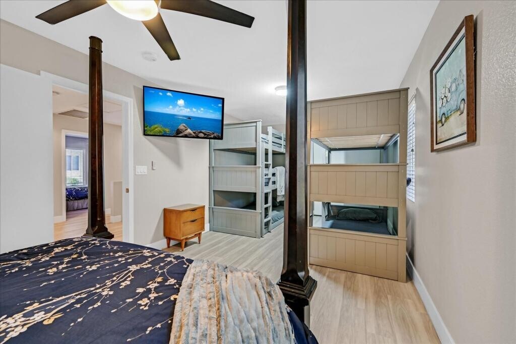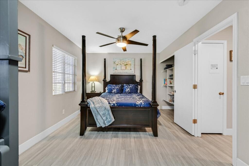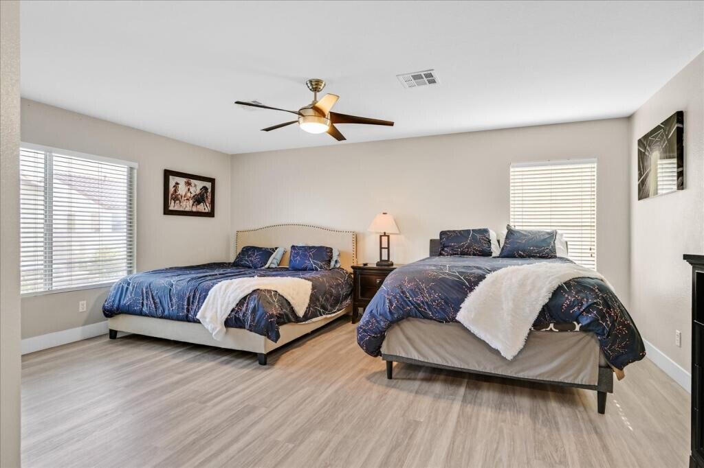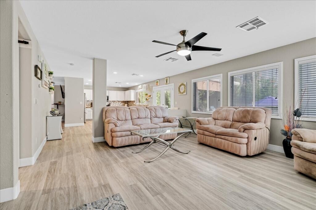 Welcome to this stunning fully updated pool home in an amazing location! This move-in ready gem features quartz counters in the kitchen and bathrooms, luxury vinyl plank flooring throughout, and fresh paint inside and out (2019). Enjoy a resort-style backyard with a resurfaced pool (2022), covered patio, low- maintenance fake grass, and mature landscaping with fruit trees. Modern upgrades include newer HVAC, tankless water heater, soft water system, new pool pump and heater, and solar screens. Close to shopping, freeways, and highly rated schools-all with NO HOA! This is the perfect place to call home. Note: The 4th 5th Bedrooms are one huge room, yet legally two rooms. The garage is not available for use.