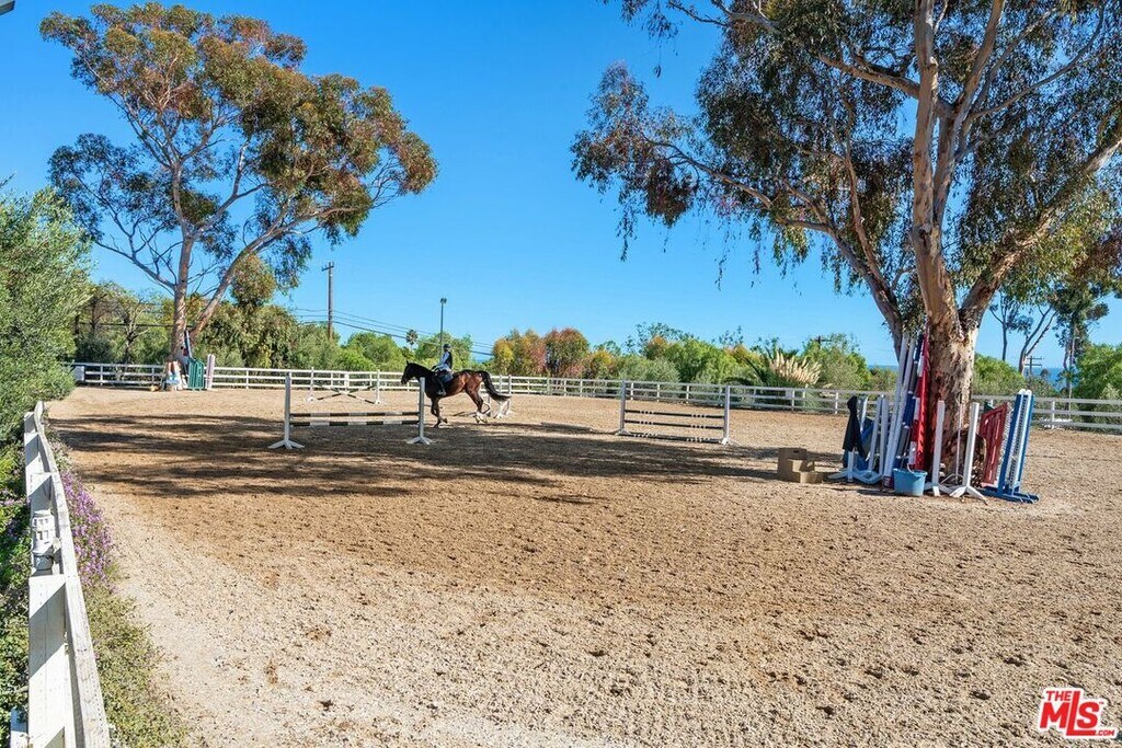 Recently renovated gated single-story ranch house w/ ocean view, large front yard w/ patio and mature landscaping.The interior features an open floor plan which comes fully furnished. The living area features French white oak hardwood flooring, L-shaped sectional, gas fireplace, large TV and custom art, while the kitchen features an island/bar w/ quartz countertops and brand-new stainless-steel appliances.The Primary Suite is well appointed with an ocean view, direct patio access and features a king-size bed, large TV and custom art. Down the hallway is a secondary bedroom that also features an ocean view, queen-size bed and custom art. Lastly, there is a second full bathroom, laundry room w/ brand-new washer/dryer and rear access to an additional large patio.This property is a multi-acre ranch that rests adjacent to miles of highly desirable hiking/riding trails, which the Tenant has the opportunity to partake in the Equestrian lifestyle if he or she desires.Located right across from world class dining, such as Geoffry's and one of the sandiest beaches in Malibu - Escondido Beach. MLS# 25608771