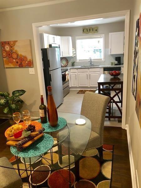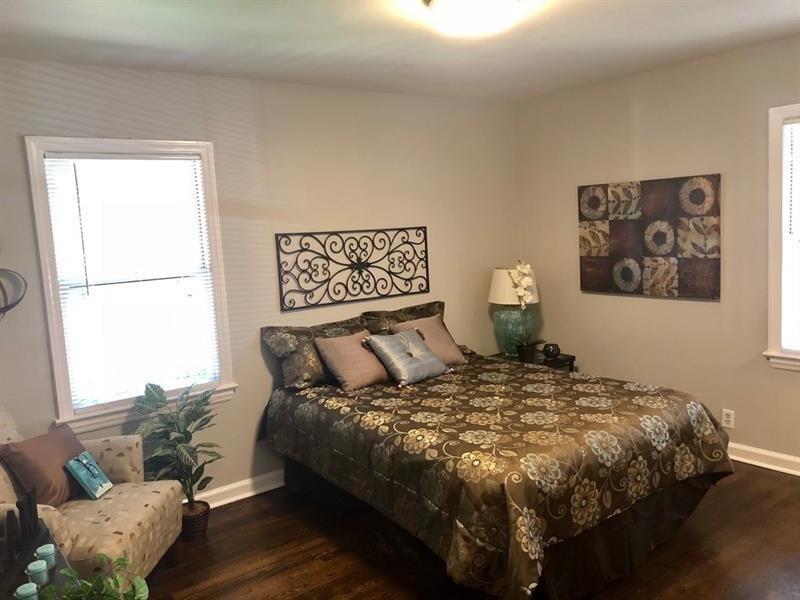 Beautifully updated East Lake Terrace bungalow offering modern comforts with timeless character. This inviting home features a freshly painted interior and exterior,gleaming original hardwood floors,and an open-concept layout that seamlessly connects the kitchen,dining,and living areas—perfect for today’s lifestyle. The expanded floor plan includes a true primary suite with a spacious en-suite bath,a third bedroom,and bonus storage space. The kitchen is outfitted with stainless steel appliances,granite countertops,and durable luxury vinyl tile flooring. Step outside to enjoy a generously sized,level backyard shaded by a mature tree canopy—ideal for entertaining on the patio or gathering around the built-in barbecue pit. With both front and back yards offering plenty of usable space,this home delivers the best of indoor and outdoor living.