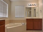 Beautifully renovated corner unit that offers 3 bedrooms, 2 1/2 bathrooms, and a 2-car garage. The downstairs area boasts a formal living and dining room, a family room with ample lighting, an upgraded kitchen with stainless steel appliances, a laundry room, and a half bathroom. Landscaping, internet, basic cable, 24-hour roaming security, gym access, an alarm system, and an Olympic-sized pool are included in this rental. If you are seeking a spacious home that is in perfect condition, this is the one for you. The bedrooms are located upstairs, and the master bedroom features a beautiful tray ceiling, a ceiling fan, a huge walk-in closet, double sinks, tub and a separate shower. This property offers deposit-free leasing for qualified tenants and is available with no security deposit.