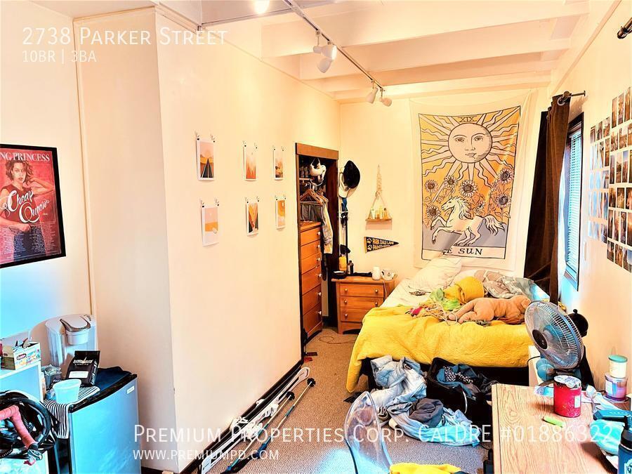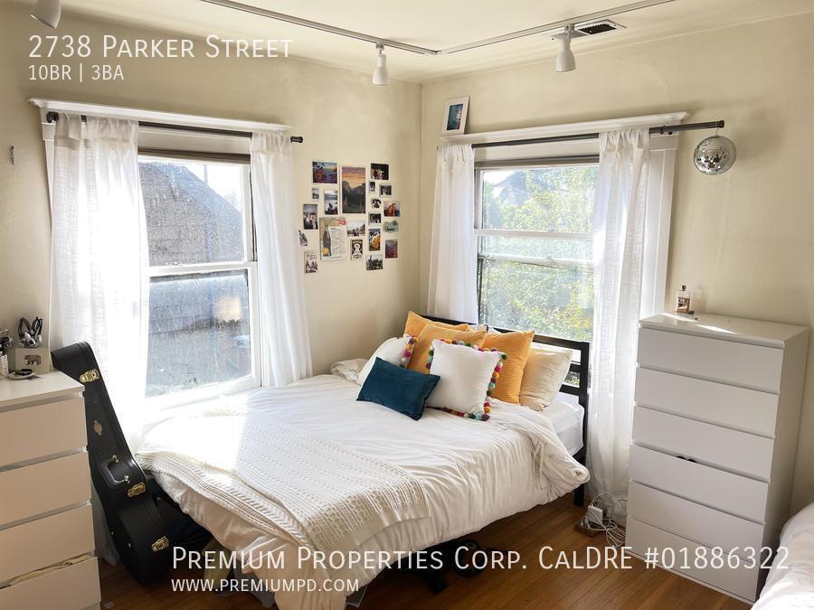 2738 Parker Street x Piedmont Ave. STUNNING 10 BED 3 BATH! **Rent Entire Home! Call Agent for Details** This Gorgeous and Spacious 10 Bedroom House Features: • Spacious Bedrooms & Three Full Bathrooms • Large Windows Offering Ample Natural Light • Beautiful Hardwood Floors • Eat In Kitchen with 3 Refrigerators • 24/7 Security System • Walk To UC Berkeley Campus • In-Unit Provided Laundry • Steps to UC Berkeley. Be on Campus in Minutes! • Walk To Grocery Store, Restaurants, And Shops • Professionally Managed For Premium Service PROPERTY DESCRIPTION: This is a true 10-bedroom house across 3 floors, offering a quiet and intimate living experience in the heart of Southside Berkeley. Spanning 3,130 sq. ft., this single-family home has a long-standing reputation for safety, with over 40 years of incident-free history. The owners rent the house under a single lease to a group of friends or acquaintances, fostering a more harmonious and cohesive living environment. Located in a neighborhood that's a mix of students and working professionals, the house is perfectly suited for those seeking both convenience and tranquility. The home features 12 spacious rooms, including a large living room and a big kitchen equipped with 3 refrigerators, a dishwasher, ample cabinet space, and a full-size washer and dryer. The layout, with carpeted walkways and bedrooms spread across the 3 floors, ensures a peaceful and intimate atmosphere. A full bathroom on each floor adds convenience, while a 9-camera motion-sensor security system provides 24/7 monitoring, offering an added layer of safety, especially during these challenging times. The 10 bedrooms are generously sized, with high ceilings, tall windows, and plenty of natural light. The house is equipped with energy-efficient LED track lighting, so floor lamps aren't needed. At the end of each lease, outgoing tenants often sell their furniture—bed, desk, and chair—at low prices to incoming tenants, making move-ins seamless. Rent for the house totals $16,500 per month for 11 residents. The home may accommodate up to 16 people. The group can assign rooms based on preferences and budgets. This well-maintained, secure home is located in a quiet and respected neighborhood, just a short walk from the UC Berkeley campus. Welcome to the Parker Duplex home at 2738 Parker Street, a charming duplex home in the heart of South Berkeley, perfectly located for UC Berkeley students and those who want to be in the center of student life! Just a short 1 mile from the CAL campus, this home offers the ultimate convenience—whether you prefer a 15-minute walk, a quick bike ride, or a short bus trip to class. Situated in one of the most student-friendly neighborhoods, you’ll be surrounded by a vibrant community with plenty of cafés, restaurants, and grocery stores just minutes away. Grab coffee at Philz or Romeo’s Coffee, enjoy a bite at Sliver Pizzeria, La Méditerranée, or Mezzo, and pick up fresh groceries at Berkeley Bowl or Whole Foods - all within walking distance. Transportation is effortless, with bus lines along Telegraph and College Avenue connecting you to Downtown Berkeley, Rockridge, and beyond. The Ashby and Downtown Berkeley BART stations are also nearby for quick access to Oakland and San Francisco. For downtime, relax at Willard Park, just a few blocks away, or explore student hotspots along Telegraph Avenue. With its prime location, easy campus access, and dynamic student surroundings, 2738 Parker Street is the perfect home for UC Berkeley students looking to enjoy a convenient, social, and exciting living experience!