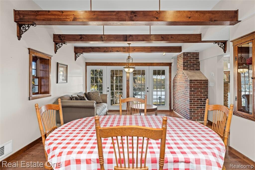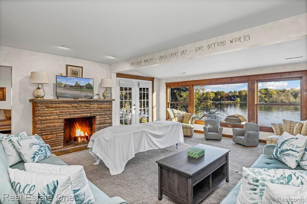 Discover lakeside living at its finest! This charming ranch on 0.51 acre sits on approximately 85 feet of frontage on all-sports Loon Lake. Step inside to rich stained-wood trim, solid six-panel doors, a stained-glass transom, expansive picture windows framing stunning water views, decorative beams and built-in display cabinets — character and warmth abound. The open family room features a wood-burning fireplace, and the kitchen offers granite countertops and stainless steel appliances. Recent updates include a new roof (2019), furnace & AC (2021), and dishwasher (2022). Outside, the lush yard slopes gently to the lake, with a utility shed by the water and its own dock — just bring your boat! Across the lake are protected wetlands, so your vista is nature-filled, not crowded. Just a short walk to Gilbert?Willis?Park (with tennis, pickleball, basketball, hiking trails and playground), and within minutes to Proud?Lake?State?Recreation?Area and the Huron?River. Excellent Wixom location, with optional lake association for access to a boat launch and sandy swim beach. Don’t miss this rare gem. B.A.T.V.A.I.