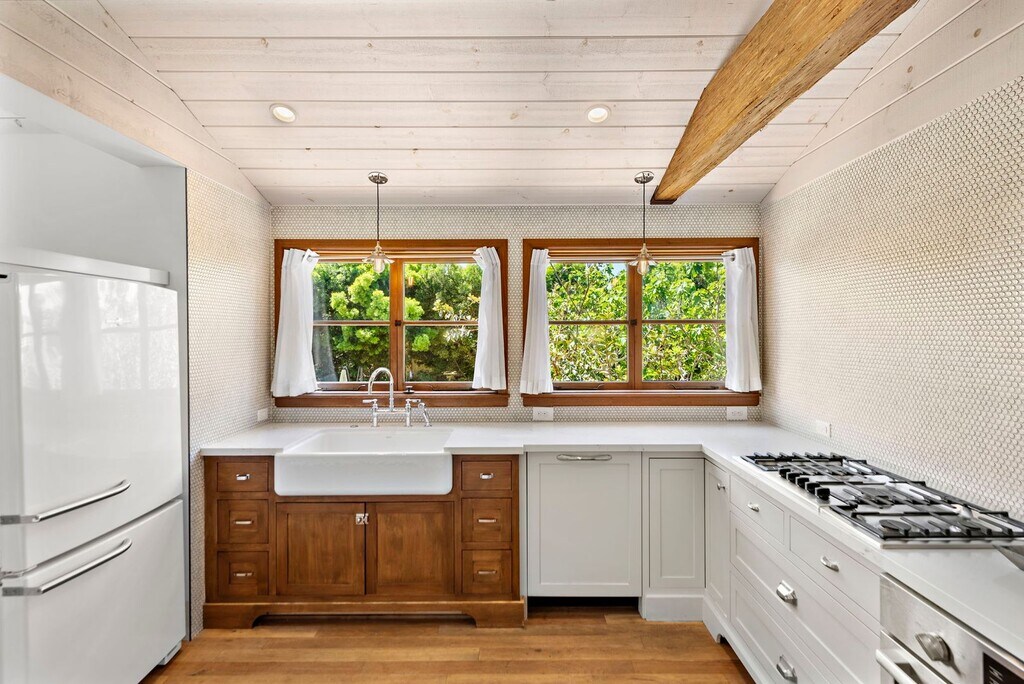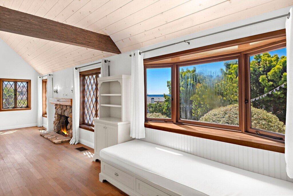 Stunning story book cottage on a rare double lot with spacious side yard and ocean view. Charming historic reconstruction all on a single level featuring vintage details throughout, tons of windows bringing in the light, open living room with vaulted wood ceilings and a cozy fireplace, exposed beams, gourmet kitchen with two-toned custom cabinets, appliances include refrigerator, dishwasher, wall oven, and gas cooktop, quartz counters and farmhouse sink, formal dining area, luxurious primary ensuite with antique vanity, claw-foot tub and spa shower, two large secondary bedrooms and another gorgeous guest bath, all highlighted with European oak flooring throughout. Secluded back patio with pergola and outdoor shower, massive side garden area creating a phenomenal outdoor living and entertaining space, plus in addition to the two car garage, there is an extra private parking area for 2+ cars off the back alley. You will love living within two blocks of one of Laguna's best beaches, Shaw's Cove, just north of the Laguna Artist Colony, it is the most desirable part of town. Conveniently located within walking distance to shopping, restaurants and galleries or hop on the local trolley to enjoy the festivals or coastal resort properties. This is a must see one of a kind property, a simply wonderful place to call home!