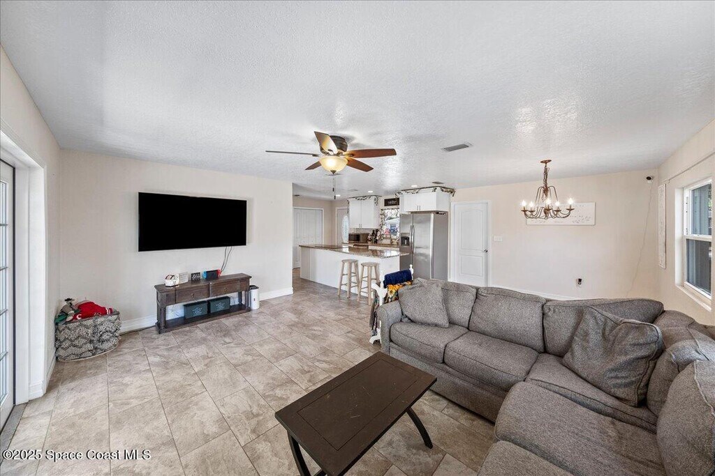 This updated 3-4 bedroom,2-bath home offers a flexible layout and a fantastic Space Coast location just minutes from the Indian River,Kennedy Space Center,and the Atlantic beaches. The bright living area flows into a modern kitchen featuring granite countertops and updated cabinetry,perfect for everyday living and entertaining. A versatile bonus room can serve as a fourth bedroom,home office,or den. Recent upgrades include a new roof (2020),impact windows,and an energy-efficient tankless water heater. The nicely maintained yard provides a relaxing outdoor space,and the powered backyard shed offers excellent storage or workshop potential. Convenient to beaches,boating,parks,shopping,and dining. Great opportunity to enjoy Florida living in a desirable Space Coast location. MLS # 1071662