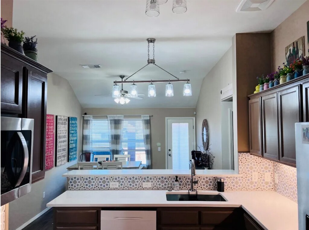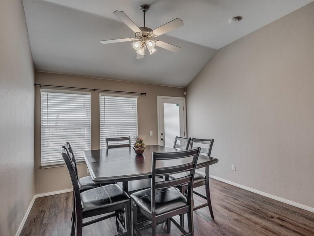 Apply now: This charming 3 bedroom, 2 bathroom house features a covered front porch, all appliances in the kitchen, including a microwave, dishwasher, electric stove, and fridge. A 2 car garage, fenced-in backyard, covered back patio, Hardwood floors, ceiling fans, lots of storage with a Walk in closet. Located in a community with a park, walking trails, and a fishing pond! Call us or text us today to schedule a tour!