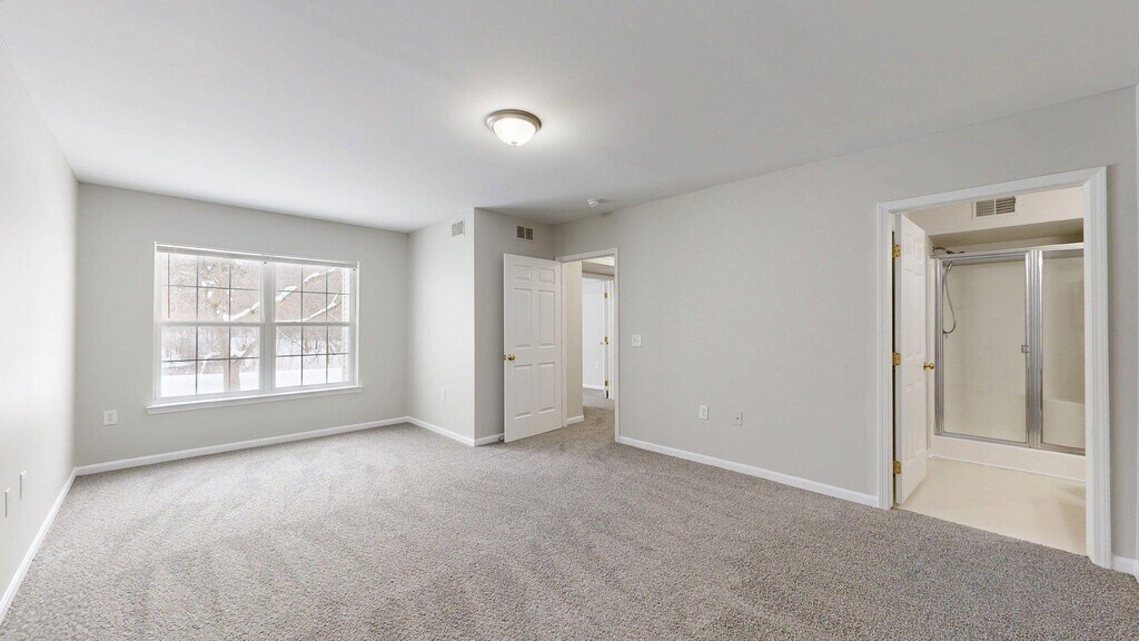 Available immediately! Ground level 3-BR,2-full bathroom ranch style end unit condo that has just been freshly painted,new carpet/padding,and new granite countertops,sinks and faucets. Contemporary open floor plan,nice sized living and dining spaces leading to a screened-in porch backing up to a tree line. Huge primary bedroom,20 x 13,with full-bath,windows on 2 sides and great outside views. 2nd and 3rd bedrooms are good sized an additional full bathroom in the hallway. The location of the home is convenient to public transportation,UM Medical Campus,North Campus,Central Campus,Toyota,Google,Domino's Farms,grocery/restaurants,retail shopping,downtown Ann Arbor and more! 1 Car detached garage with additional free parking spaces for a second car and visitors. Application fee is $40 per adult.