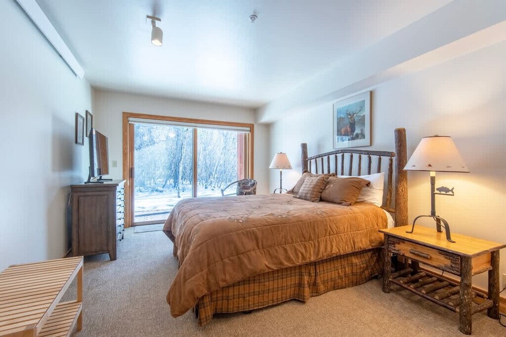 Welcome to a rare 3-bedroom retreat at Teton Creek Resort, offering unparalleled space and comfort for your group. This condo is perfect for families, friends, or couples traveling together, whether you're gearing up for powder-filled ski days or summer adventures in the Tetons. With two master suites featuring a king and queen bed, plus a third bedroom with twin beds, everyone can have their own room and spread out in style. Enjoy the convenience of being just 16 minutes from Grand Targhee Ski Resort and centrally located for summer adventures, with easy access to Grand Teton National Park and Yellowstone. This condo stands out with modern mountain comforts, including brand-new stainless steel kitchen appliances, all-new smart TVs, and a cozy living room with a propane flame fireplace. Unwind on the private patio for wildlife spotting, or relax in the community hot tub after a day of exploring. The in-unit washer and dryer allow you to pack light and stay fresh, while the electric BBQ grill is ideal for summer cookouts with a scenic backdrop. Located closest to Grand Targhee Ski Resort, just 16 minutes away, this condo is centrally located for summer adventures. Easily visit both Grand Teton National Park and Yellowstone from one spot. Explore Jackson Hole and return to the quieter side of the Tetons in Teton Valley, Idaho, where vibrant local culture and breathtaking landscapes await. Distances to key attractions include Grand Teton National Park (1 hr), Yellowstone (West Entrance) (1 hr 59 min), and Jackson Hole (54 min). Nearby towns include Driggs, ID (8 min) and Victor, ID (19 min). The minimum age of the primary renter is twenty-five years. Quiet hours are from 9 pm to 8 am, and no events or parties are allowed. No smoking or vaping is permitted in the home or on the decks, with a designated smoking area adjacent to the Bannock Building parking area. A maximum of two licensed vehicles is allowed in the parking area. Fines will apply for violations, including smoking in non-designated areas, violation of house rules, and failure to vacate at check-out time, with a minimum $500 fine for certain violations.