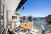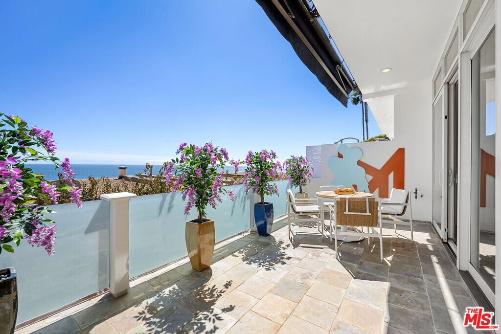 Beautiful bluff two-story Richard Neutra designed living space overlooking Escondido Beach. Enjoy panoramic ocean views from two of three balcony areas. Upstairs primary boasts a walk-in closet and covered balcony while the 2nd bedroom could be used as an additional office with its balcony. Enjoy the water and sun from this mid-century inspired condominium in the private and secluded Holiday House. With a private path to Geoffrey's and the beach, what else do you need? Offered furnished or unfurnished. Lease amount for summer/short term to be $22,000/Month. MLS# 25594741