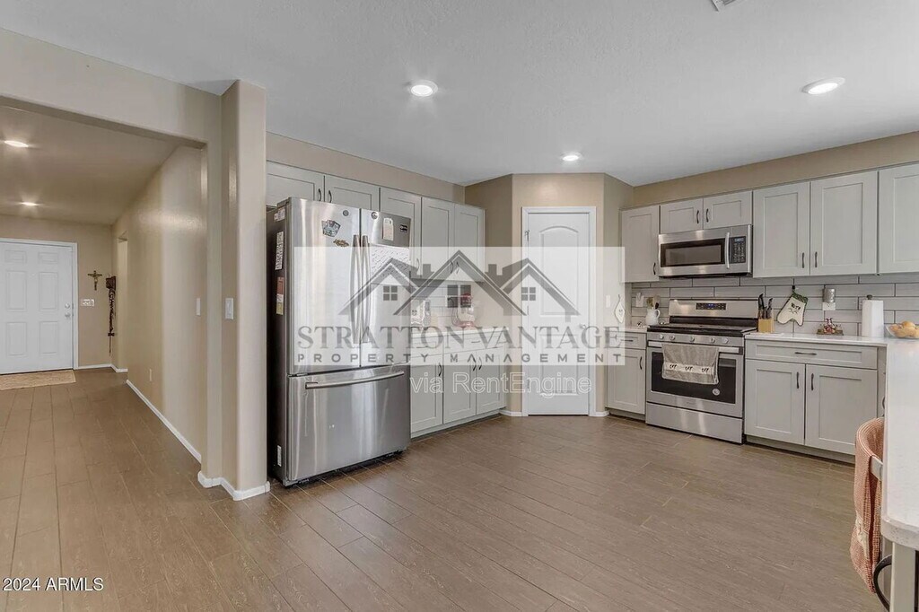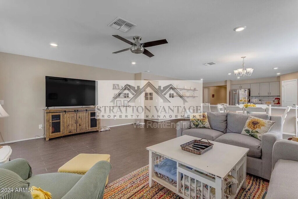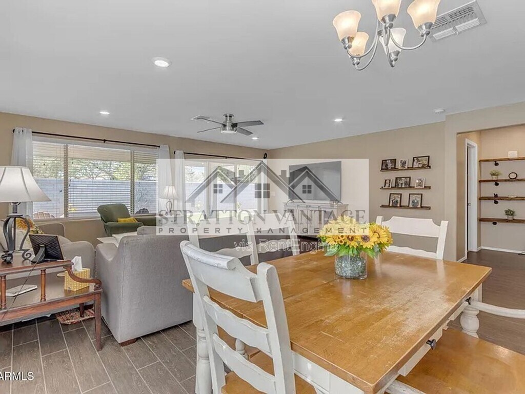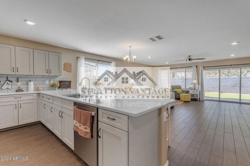 Beautiful single-story 4 bed, 2 bath home with an open great room layout. Features include wood-look tile floors, cozy carpeted bedrooms, and a modern kitchen with quartz countertops, stainless steel appliances, and a large island. A 3-panel slider opens to the covered patio and low-maintenance turf yard—perfect for entertaining. Enjoy community amenities like a pool, playground, and walking paths. *BEWARE OF SCAMS! We do not list our homes on Craigslist or Facebook Marketplace. Please get in touch with Stratton Vantage Property Management to confirm availability and rent price* MOVE-IN COSTS Security Deposit: 1.25x–1.5x monthly rent (75% may be refundable) First Month’s Rent + 4.4% admin fee + $49.95 Resident Benefits Package setup fee $225 lease preparation fee *Pets: If applicable, $250 non-refundable pet fee per pet + first month’s pet rent ($60–$80 per pet, includes $30 pet admin fee). Some breed restrictions apply. Does not apply to Assistive Animals MONTHLY CHARGES Rent + 4.4% admin fee $49.95 Resident Benefits Package (includes renters’ insurance, air filter delivery, credit reporting, rewards program, and more) *Pets: If applicable, $60–$80 pet rent per pet (includes $30 pet admin fee). Does not apply to Assistive Animals VIEWING INSTRUCTIONS Call (FOUR EIGHT ZERO FIVE FIVE THREE EIGHT ZERO NINE FOUR) to schedule a self-guided tour. IMPORTANT Before applying, please visit to review rental qualifications and legal disclosures. ADDITIONAL DISCLOSURES Stratton Vantage Property Management is an Arizona LLC (dba of Brewer & Stratton Property Management LLC) 12-month lease minimum; longer terms may be negotiable. We follow the Fair Housing Act and do not discriminate based on race, color, religion, sex, handicap, familial status, or national origin. All info is deemed reliable but not guaranteed. We are not responsible for any errors or omissions in this listing. By submitting your information on this page you consent to being contacted by the Property Manager and RentEngine via SMS, phone, or email.