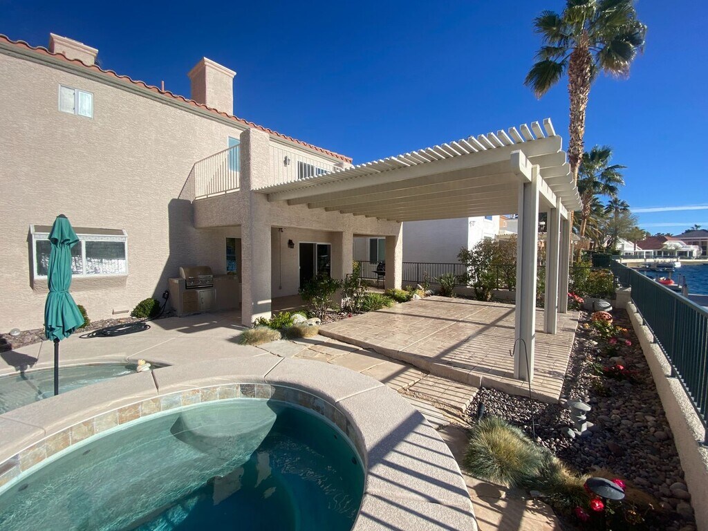Make every day feel like a vacation in this beautifully updated 4-bedroom lakefront residence, freshly painted and perfectly positioned to capture breathtaking water and mountain views. Enjoy unforgettable sunsets over Mt. Charleston from your own private dock, creating a true resort-style lifestyle right at home. The spacious primary suite features a large private balcony overlooking the lake, while the thoughtfully designed floor plan includes a main-level bedroom and full bath with a walk-in shower—ideal for guests or multi-generational living. Outdoors, enjoy mature desert landscaping and serene lakefront ambiance. This home is fully equipped with all appliances included, plus a tankless water heater, water softener system, and washer & dryer. The dual A/C units and furnace are also like new, offering year-round comfort and efficiency. Located in the highly sought-after Desert Shores community, residents enjoy premier amenities including boating, fishing, lakes, swim lagoon, sandy beach, community center, restaurants, and shops. Pets are welcome with additional deposit. Weekly pool service is included in rent. This is rare lakefront living at its finest—schedule your private tour today.