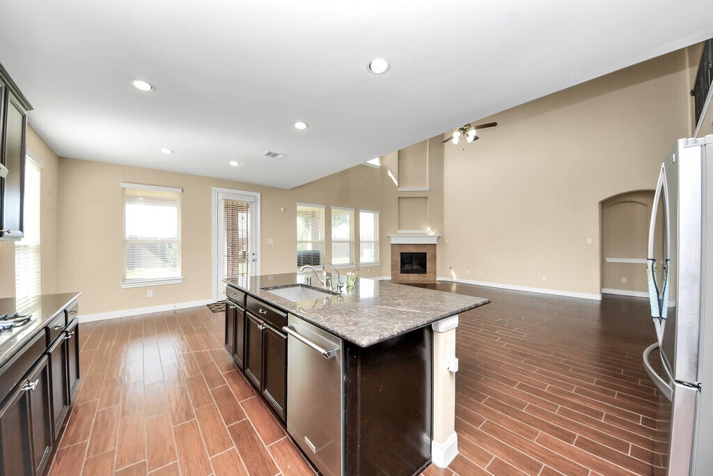 Beautiful 4-bed,3.5-bath home with brick & stone curb appeal! Features include wood-look tile floors,soaring ceilings,formal dining,study/flex room,and a two-story living area with fireplace. The gourmet kitchen offers granite counters,island seating,stainless appliances & gas cooktop. Primary suite down with spa-style bath,dual sinks,soaking tub,separate shower & oversized closet. Upstairs includes 3 bedrooms—one a secondary suite with dual sinks & full bath—plus a game room and media room. Enjoy a covered patio & large backyard with no back neighbors. SOLAR PANELS!!! MLS# 61950811