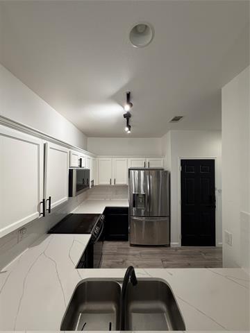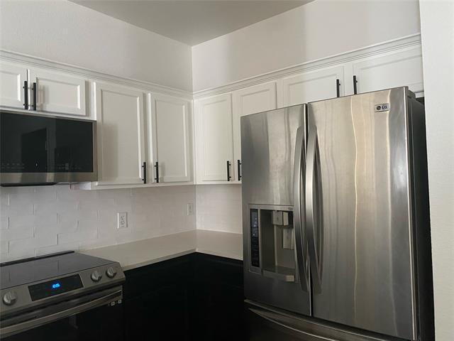 Beautifully updated 3 bedroom, 2.5 bath townhome featuring a modern, move-in-ready design. The kitchen showcases upgraded quartz countertops, a newly installed microwave, and refrigerator included, perfect for everyday convenience. Stylish upgraded laminate wood flooring flows throughout the main living areas, creating a clean and contemporary feel. The home offers remodeled, modern style bathrooms with tasteful finishes and thoughtful updates. Enjoy added security and ease with a smart combo code entry at both the front door and garage. Parking is a breeze with a 2 car garage plus two additional parking spaces conveniently located in front of the garage. This well-maintained townhome blends comfort, functionality, and modern upgrades ideal for today’s lifestyle. Minutes from Cowboys stadium, Texas Rangers Stadium & DFW Airport.