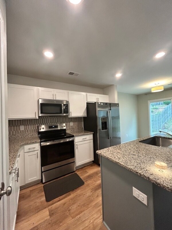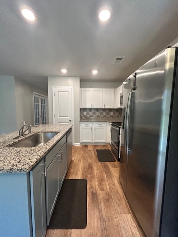 Step into this charming 2-year-old sanctuary, where every detail whispers comfort and style. The main level welcomes you with luxurious vinyl plank flooring, leading to a private office adorned with elegant French doors—a perfect haven for quiet contemplation or productive endeavors. The heart of the home unfolds into an open-plan design, with an eat-in kitchen gracefully overlooking the inviting living room. Here, culinary dreams come to life amidst a spacious island, a well-appointed pantry, gleaming stainless steel appliances, and exquisite granite counters. Beyond the threshold, a welcoming patio beckons, embraced by a privacy fence and thoughtfully curated landscaping—an idyllic setting for cherished moments and serene relaxation. Ascend to the second level, where a versatile loft awaits, alongside three generously sized bedrooms. The primary suite is a true retreat, boasting a private ensuite with double vanities, a grand walk-in shower, and a capacious walk-in closet, offering a spa-like experience. The two additional bedrooms, each featuring their own walk-in closets, share a beautifully appointed full hall bath with double vanities and a convenient tub/shower combination. Further enhancing this exquisite home are a two-car garage with an opener, a convenient half bath, and a dedicated second-level laundry room, ensuring both luxury and practicality are seamlessly intertwined.
