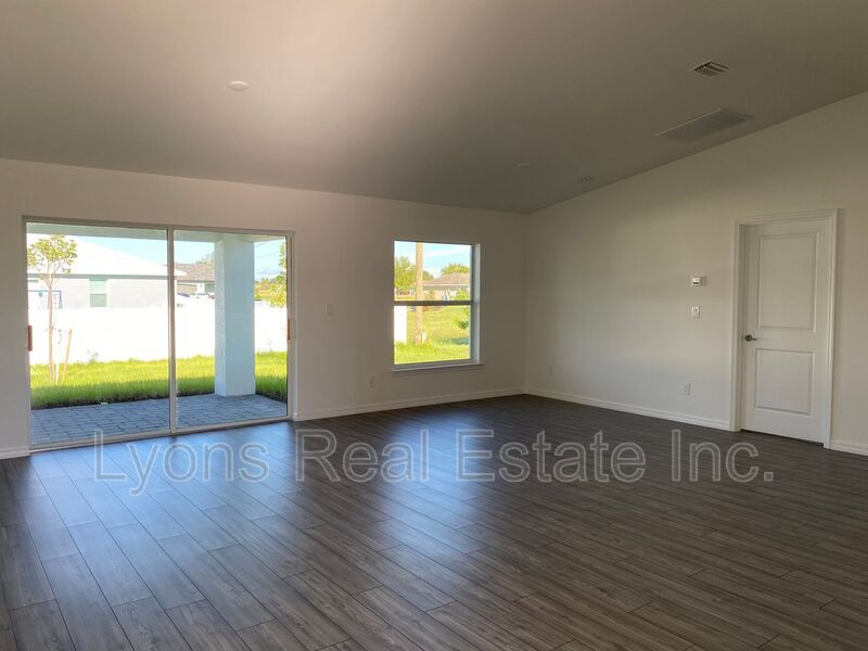 3 bedroom 2 bathroom Home located in North East Cape Coral. Open lanai, Stainless Steel appliances, washer and dryer hookup. 1400 sqft $1595 rent + $1595 Security req'd to move in. SMOKING PROHIBITED. Electric & lawn is tenants responsibility. In order to qualify: All applicants must have min of a 550 credit score, 2 years previous, good, & verifiable employment & rental history (or home ownership) w/ NO lapses / gaps / NOT living w/ family, also no evictions, & evidence of $3900.00 NET mo income shown w/December. pay stub or Sept. thru Dec. bank statements. To apply for this property, please visit our website and complete the online application. There is a $75 application fee per adult, and all individuals over the age of 18 who will be residing in the property must apply. Additionally, there is a separate $500 holding fee payable to Lyons Real Estate via money order or cashier's check. This holding fee will take the property off the market and hold it up to 30 days. If the application is approved, this $500 will be applied towards the first month's rent. In the event the application is declined, the $500 holding fee will be refunded. "EQUAL HOUSING OPPORTUNITY"