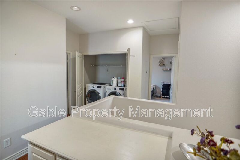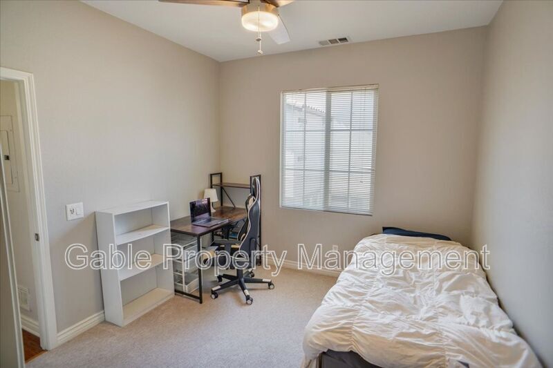 This beautifully maintained property offers 3 bedrooms and 3 bathrooms in the highly desirable Creekside community. The home features a spacious living room with wood flooring throughout (no carpet) and abundant natural light. The upgraded kitchen includes white cabinetry, recessed lighting, stainless steel appliances, a window over the sink, granite countertops, and a stylish subway tile backsplash. Adjacent to the kitchen is a dining area with an upgraded light fixture and a cozy family room featuring a ceiling fan, recessed lighting, and a tiled fireplace. A sliding glass door leads to the inviting backyard area, and an attached two-car garage provides convenient access. Downstairs, you'll also find a powder room with an upgraded vanity. Upstairs offers a dedicated laundry area, a linen closet, and a hallway bathroom with dual sinks and a shower/tub combination. All three bedrooms are generously sized and feature ceiling fans. The primary bedroom includes a private balcony with a lovely view, plus an en-suite bathroom complete with dual vanities, a separate tub and shower, and a walk-in closet. The Creekside community offers resort-style amenities, including pools, parks, and scenic walking and biking trails. Conveniently located near shops, restaurants, and award-winning schools, this home has it all!
