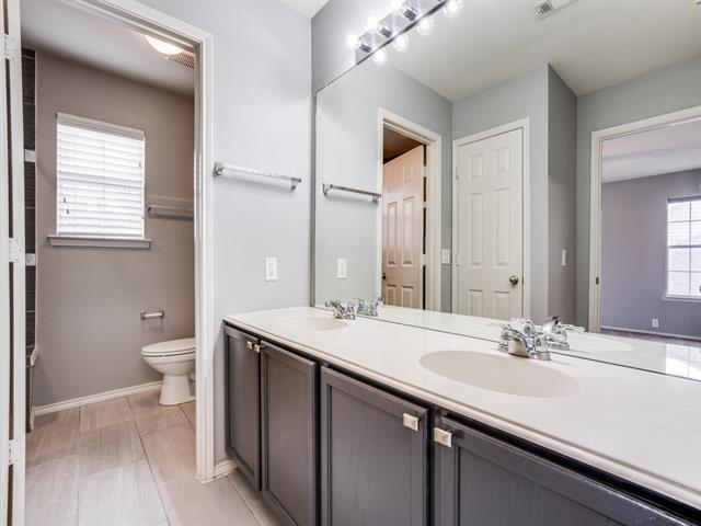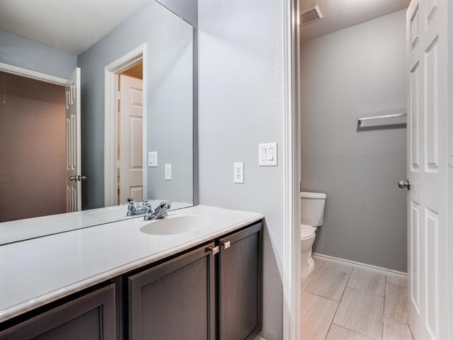Fabulous townhome with 3 bedrooms, 2.1 baths. Laminate floor in living area, stainless steel appliances, granite counter tops with eat in kitchens, upgraded master shower, modern grey tone wall paint, etc. Nice size bedrooms. Location is close to major shopping, entertainment, restaurants, and has easy access to G. Bush Turnpike. Refrigerator, washer, and dryer are included. Landlord pays HOA fee and yard maintained by HOA. A MUST SEE!
