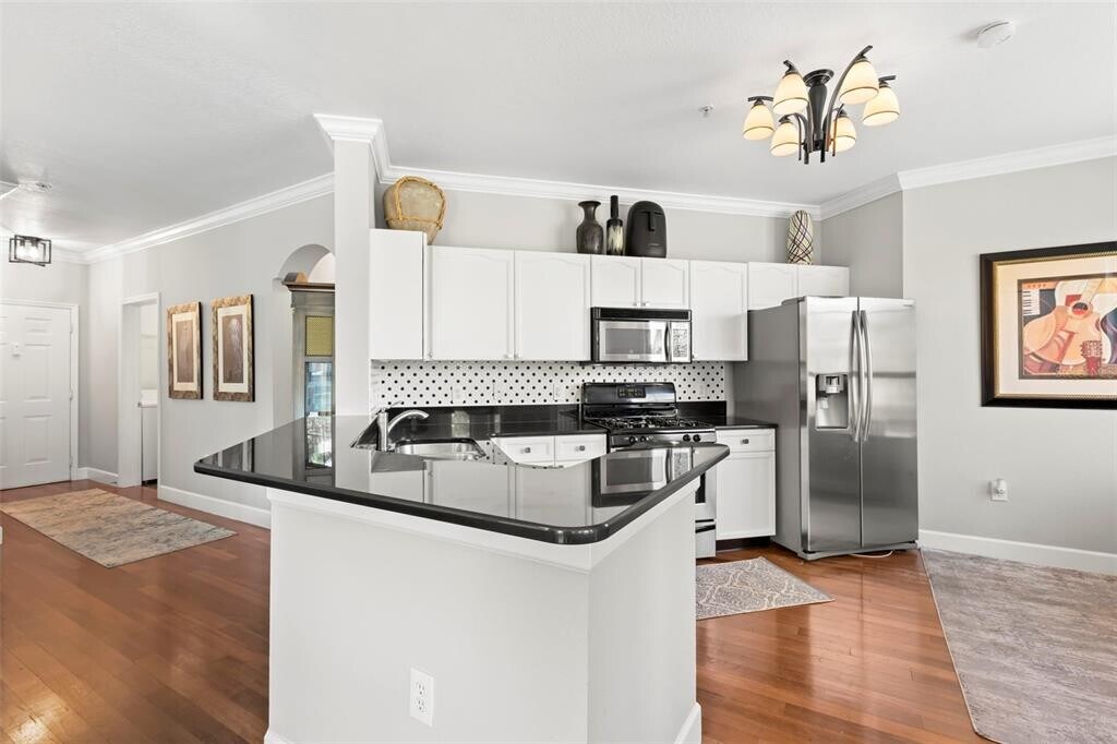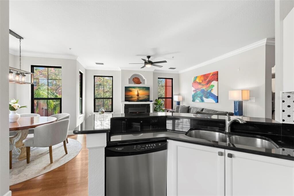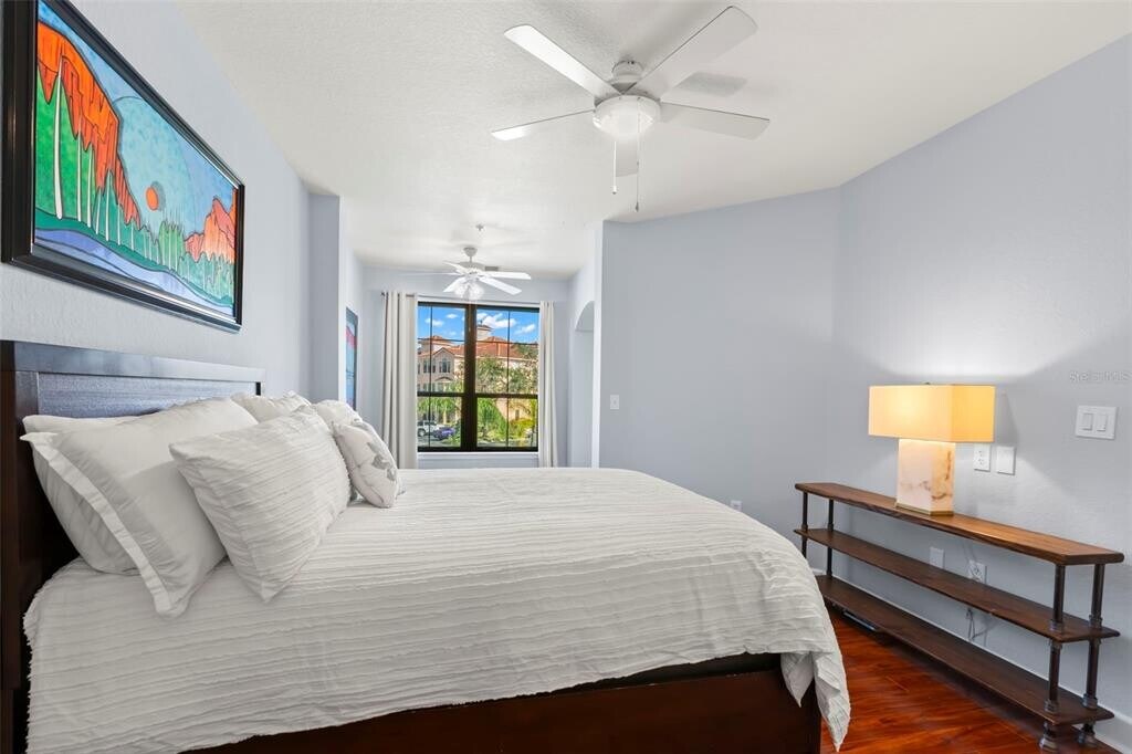 Stunning Waterfront Condo in the Exclusive Grand Bellagio at Baywatch Community! Discover resort-style living in this immaculate,FULLY FURNISHED 2-bedroom,2-bathroom condo located in the upscale,gated Grand Bellagio community in Clearwater. Situated on the 2nd floor,this spacious unit boasts an open floor plan with high ceilings,crown molding,elegant wood floors throughout,and PARTIAL WATER VIEWS of Tampa Bay. The large living area offers a cozy gas fireplace and a modern sectional sofa,flowing seamlessly into the dining area with seating for five. The gourmet kitchen boasts white wood cabinets,granite countertops,a pantry,and stainless steel appliances,including a side-by-side refrigerator,gas range,microwave,and dishwasher. Crown molding adds a touch of elegance to the main living areas. The primary suite includes a queen-size bed,an extended sitting room perfect for an office or reading nook,and an en suite bathroom with dual sinks,a glass step-in shower,a deep soaking tub,and a huge walk-in closet. The second bedroom is set up as an office with a desk and chair,but the OWNER WILL ADD A FULL-SIZE BED UPON REQUEST. Both bedrooms and the living room are equipped with ceiling fans. The unit also includes an interior laundry room with a full-size washer and dryer. The Grand Bellagio community offers resort-style amenities,including 24-hour gated security with guard,a luxury clubhouse with a 24-hour state of the art fitness center,a billiards room,business center,board room,and sauna. Relax by the heated outdoor pool with poolside cabanas,or enjoy the hot tub or outdoor party room,perfect for entertaining. Additional amenities include tennis courts,a playground,a 1.5-mile waterfront trail,waterfront gazebos,grills,picnic areas,fishing spots,and opportunities to spot manatees or watch dolphins play! We have everything you need to make this place your home! MLS# TB8443320