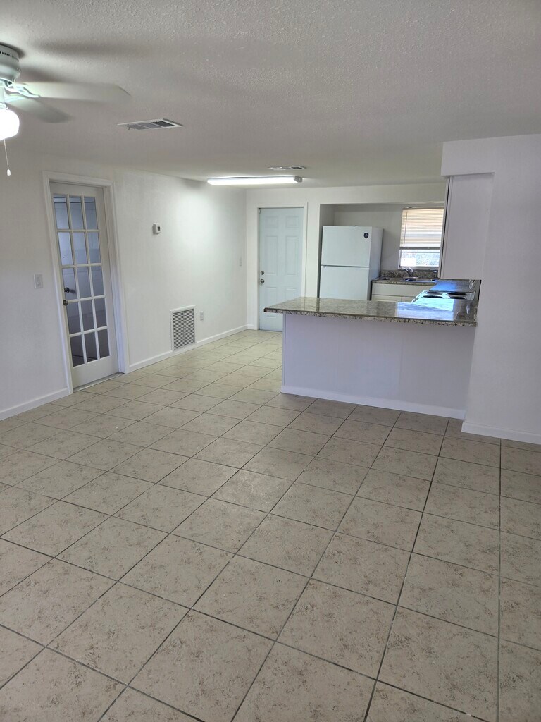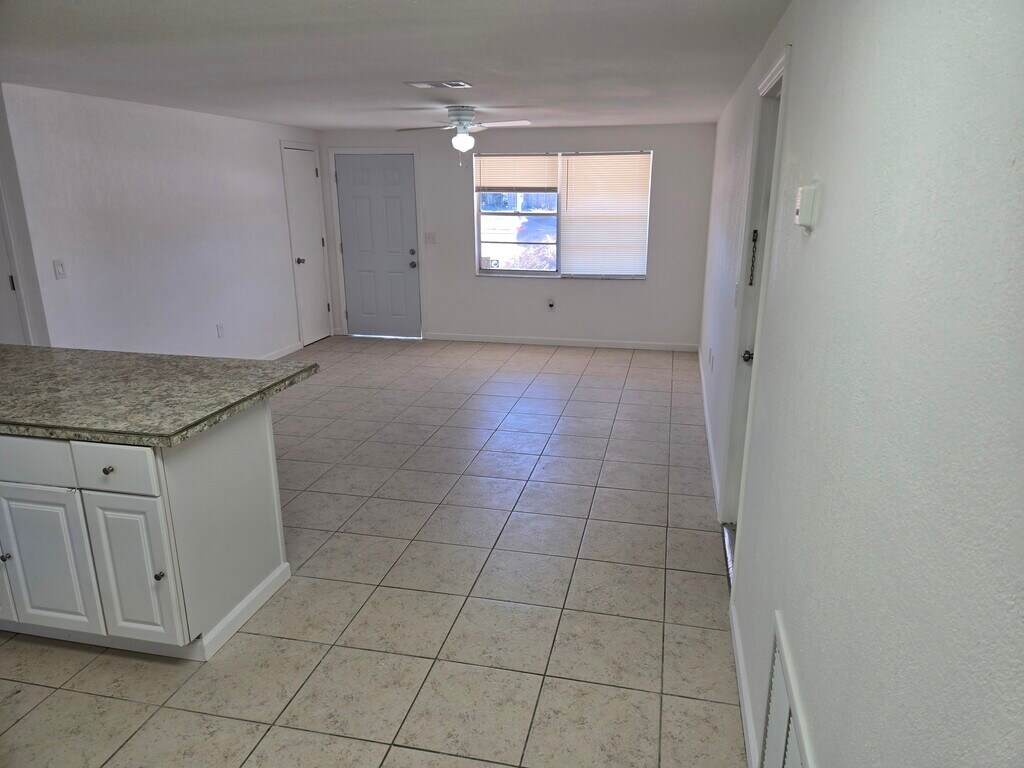 This is a all tile house that has a remodeled kitchen. The kitchen has a large amount of cabinet space with new refrigerator / dishwasher and stove. There is a moderate size living room with two moderate sized bedrooms. There is also a single car garage and dedicated washer dryer room with washer dryer hookups. The bathroom has a tub/shower and vanity. There is a large fenced in backyard. The house has water softener system and is on well water and septic system which saves about $125/month on utility payments. It also has a solid air conditioning unit. Solar film has been applied to the eastern windows to markedly save on your electric bill. In addition the house has a new roof. I would accept one medium to small sized well behaved dog. The neighbors on both sides of this house are very nice. $1,895/month rent with $1,000 security deposit and pet deposit if applicable. If interested please call Don. The house will be available around February 20, 2026.
