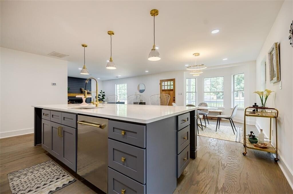 Step into modern elegance at this designer-renovated East Lake bungalow offering open-concept living,high-end finishes,and timeless style. The chef’s kitchen features quartz countertops,two-tone cabinetry,wine fridge,36” ZLine gas range,and walk-in pantry. Entertain easily with mudroom access to a large rear deck and two cozy fireplaces for year-round ambiance. The vaulted primary suite boasts skylights,fireside sitting area,and custom closets with industrial metal doors. Each bathroom showcases hand-selected tile and luxury fixtures. Private off-street parking and turnaround for easy access. Minutes to Oakhurst Village,Downtown Decatur,Kirkwood,and East Lake Golf Club. A rare blend of craftsmanship,comfort,and convenience — intown living at its finest!