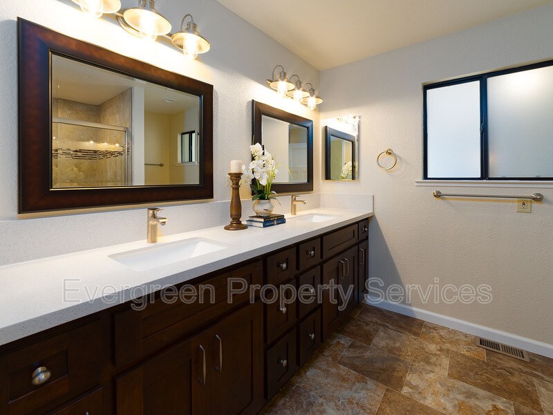 AVAILABLE NOW! 2749 Sandhurst Drive, Cameron Park - Peaceful 4 bedroom, 2 bath, 2,033 sq ft, single story home, walking distance from Cameron Park lake. This home offers a large great room (family room/dining room/kitchen) with wood laminate floors & a gas fireplace. The kitchen has a refrigerator, gas stove, dishwasher, microwave & granite counters. The bedrooms are carpeted. Both bathrooms have double sinks, & there is an inside laundry room with hook-ups. Central heat and air & an attached garage. There is extensive decking in the back yard with access from the master bedroom and family room that overlooks a seasonal creek area. Terms are $3,150/month with a 12 mo lease. Tenants pay garbage, electricity & propane plus only $90/mo for water. One dog under 25 lbs is possible with some breed restrictions. Security deposit is $3,150. Information is available at Schedule a viewing appointment before completing your application. (Photos are representative of the property and do not include furnishings.) Application fee is $25/adult. Call for viewing information. Minimum requirements apply. Evergreen Property Services is a Fair Housing provider. DRE 01729115.