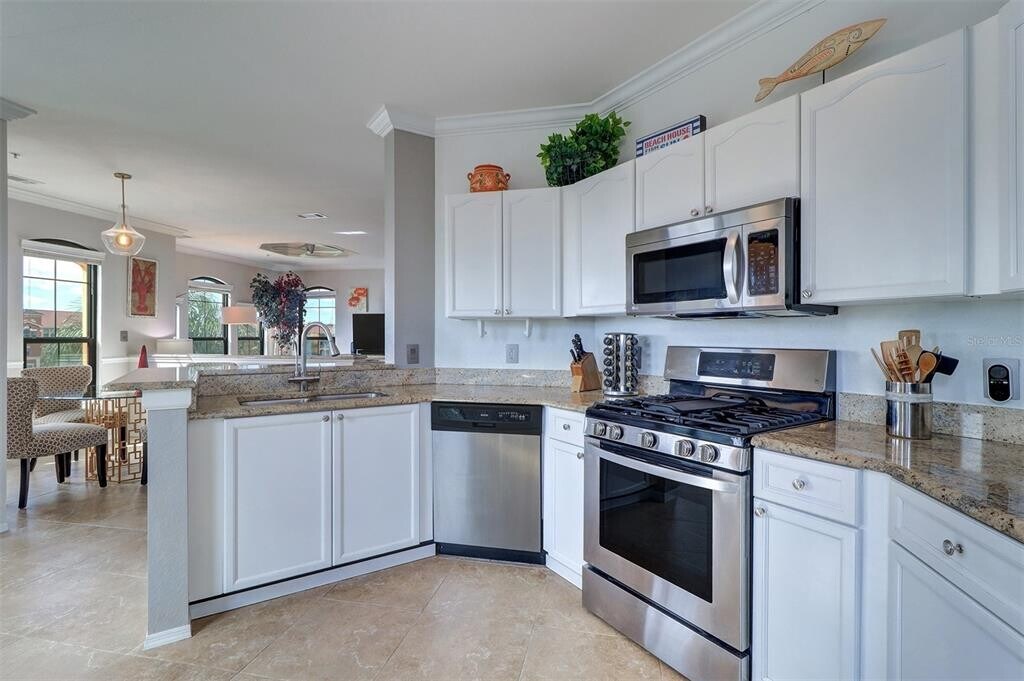Beautifully updated and fully furnished third floor corner "Portofino model" consisting of 1080 heated and cooled square feet with one bedroom,one bath,generous living areas and a one car garage with additional parking space reserved directly behind the garage door. Exquisite water views of "Old Tampa Bay" from the 9 x 9 terrace that provides breathtaking sunrises and sunsets!! This condominium features numerous windows that give you natural light with multiple water views; granite kitchen counter tops,stainless steel appliances,wood cabinetry,small kitchen eat-in area and breakfast bar with separate pantry; large 24x24 tile flooring throughout; wood flooring in bedroom and living room; cultured marble his and her separate single bathroom vanities,separate shower and garden tub; crown molding in the living,dining,kitchen foyer/entry and primary bedroom; coffered ceiling and ceiling fan in living room; sitting area in primary bedroom; full size washer and dryer in utility room with shelves; all new hurricane impact windows and sliding glass door. Oversized one car garage underneath the building with direct access to the breezeway and up the stairs to the condominium. This gated community has a 24 hour guardhouse with check in; 6800 square foot elegant clubhouse with management offices,fitness center,conference room,billiards room and club room; poolside cabanas and patio tables and chaise lounges; geo-thermal heated pool and spa,lighted tennis court,sand volleyball and playground. The Docks at Bellagio are currently under renovation. The kayak,entertainment and sun deck pavilions are closed during construction. Call to schedule your personal viewing today. Resort style living in a residential community. NO SHORT TERM RENTALS OR AIRBNB ARE ALLOWED as per the City or governing documents. MLS# TB8443990