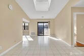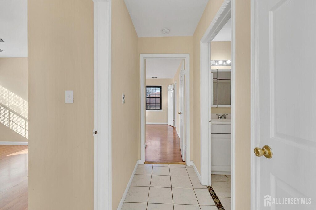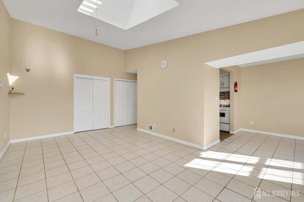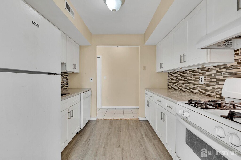 Bright and airy 2-bedroom condo for rent,ideally located for commuters and everyday convenience. This second-floor unit with no neighbors above offers added privacy and a quiet living experience. The home features a well-designed layout with a sun-filled living room enhanced by a skylight,creating a warm and inviting atmosphere. The updated galley kitchen showcases brand new cabinetry and countertops,along with a separate dining area perfect for everyday meals or entertaining. Sliding doors lead to your private balcony,ideal for enjoying fresh air and outdoor space. The spacious primary bedroom includes a walkin closet and a private en-suite bathroom. The second bedroom is also generously sized with ample closet space. Additional features include laminate and tile flooring throughout,central air conditioning,and the convenience of in-unit laundry. Perfectly situated near shopping,dining,major highways,and NYC transportation,making this a true commuter's dream.