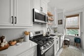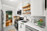 This bright, spacious 2-bedroom, 1-bath Tudor-style condo offers 1,241 sq ft, with a dedicated parking space. Sun-filled oversized rooms feature beautifully refinished hardwood floors and abundant storage throughout. The updated kitchen and bath are designed for style and function, and a newly renovated laundry room adds convenience. Located in a stately elevator building with a serene interior courtyard and fountain, the home is close to transportation, shopping, dining, hospitals, and houses of worship. A rare opportunity to enjoy timeless charm, modern updates, and airy living in one well-maintained apartment.