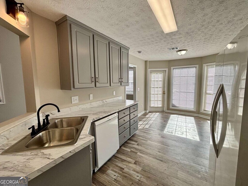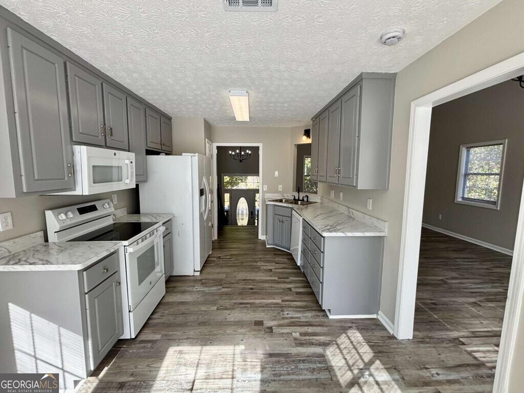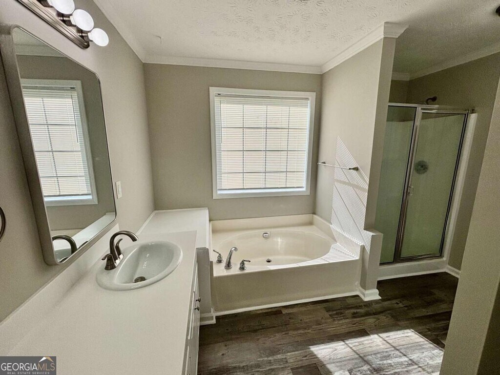 Convenient to Hwy 316 Great room and dining room with vaulted ceilings, fireplace w/ bay windows and breakfast room, ceiling fans throughout. Master bedroom w/ double trey ceiling, Master bath w/ double vanity, separate garden tub and shower. Lower level has two bedrooms, full bath + spacious utility room. Private oversized deck overlooks large fenced back yard. Minutes to highway 316.