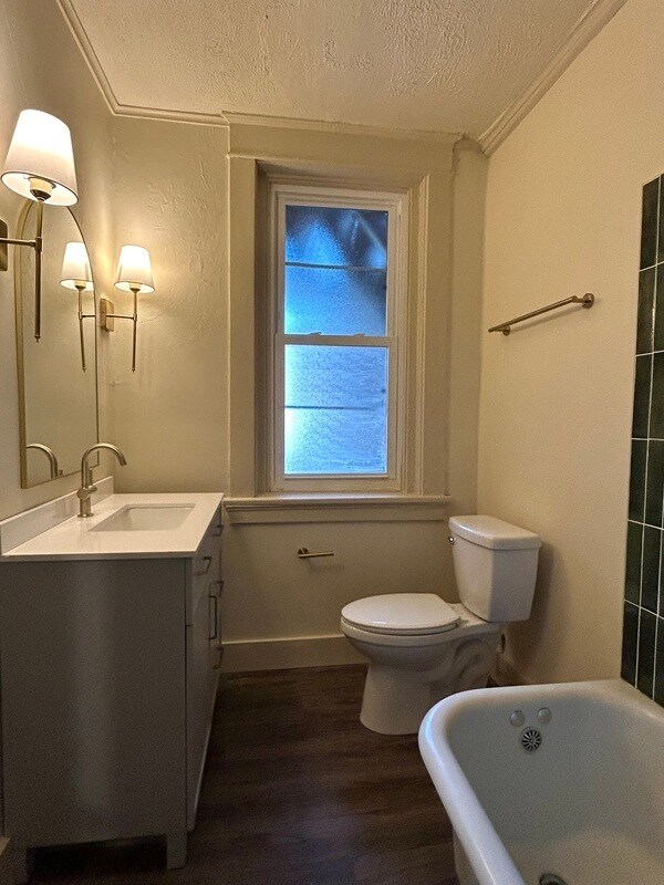 Welcome to Apt 4 at 2750 Broadway Ave, a sophisticated NYC-style building located in the heart of Pittsburgh’s vibrant Dormont neighborhood. Some perks include: -Across the "T" Stevenson Station -On-site Laundry & Storage Beautifully renovated and designed with timeless elegance, blending classic charm with modern luxury. Space features great storage with original craftsmanship built-ins, stunning gold accents and fixtures, giving it an old-money feel, and complemented by a serene cream-painted palette that brightens every room. Apartment boasts new luxury vinyl flooring throughout, designer kitchen with green, cream cabinets and original built-in pantry, equipped with microwave and gas stove—perfect for cooking enthusiasts, upgraded bathroom with emerald subway tile surround, standing tub, refined vanity, and matching gold fixtures. Large windows throughout the unit flood the space with natural light, creating an inviting and airy atmosphere. Enjoy the added privacy and stunning views of the town from this 2nd floor apt. On-site laundry & storage available for your convenience. Location couldn’t be more ideal, just a short distance from the lively Dormont Strip, offering a variety of trendy shops, restaurants, and cafes. Public transit options are right nearby, including the “T” light rail station across the street, providing quick and easy access to downtown Pittsburgh and beyond. If you’re looking for a blend of classic style, modern comforts, and a prime location, this is the perfect place to call home. Flexible move-in! Tenant pays electric, gas, and water/sewer. Landlord pays trash. Street parking. Pet-friendly $25 fee for small/medium dog, $25 for up to 2 cats. No smoking. Application fee non-refundable