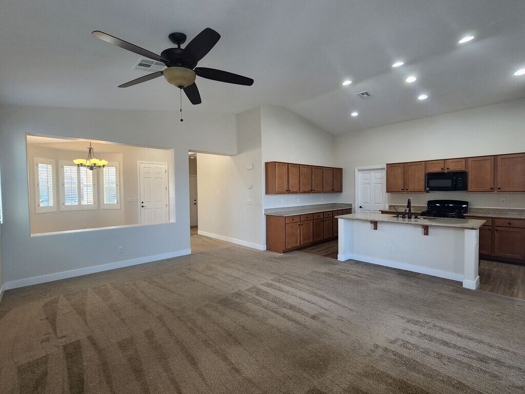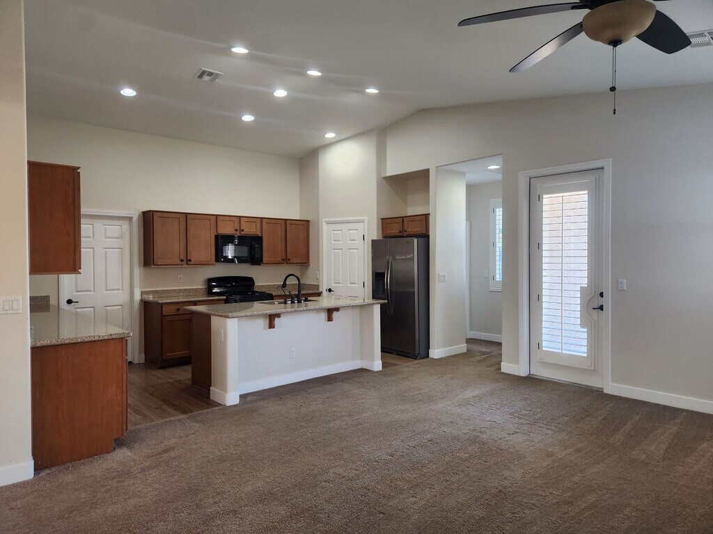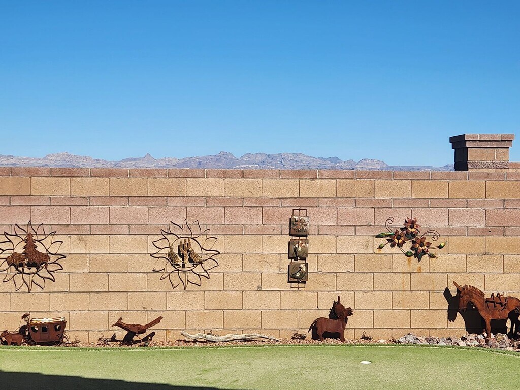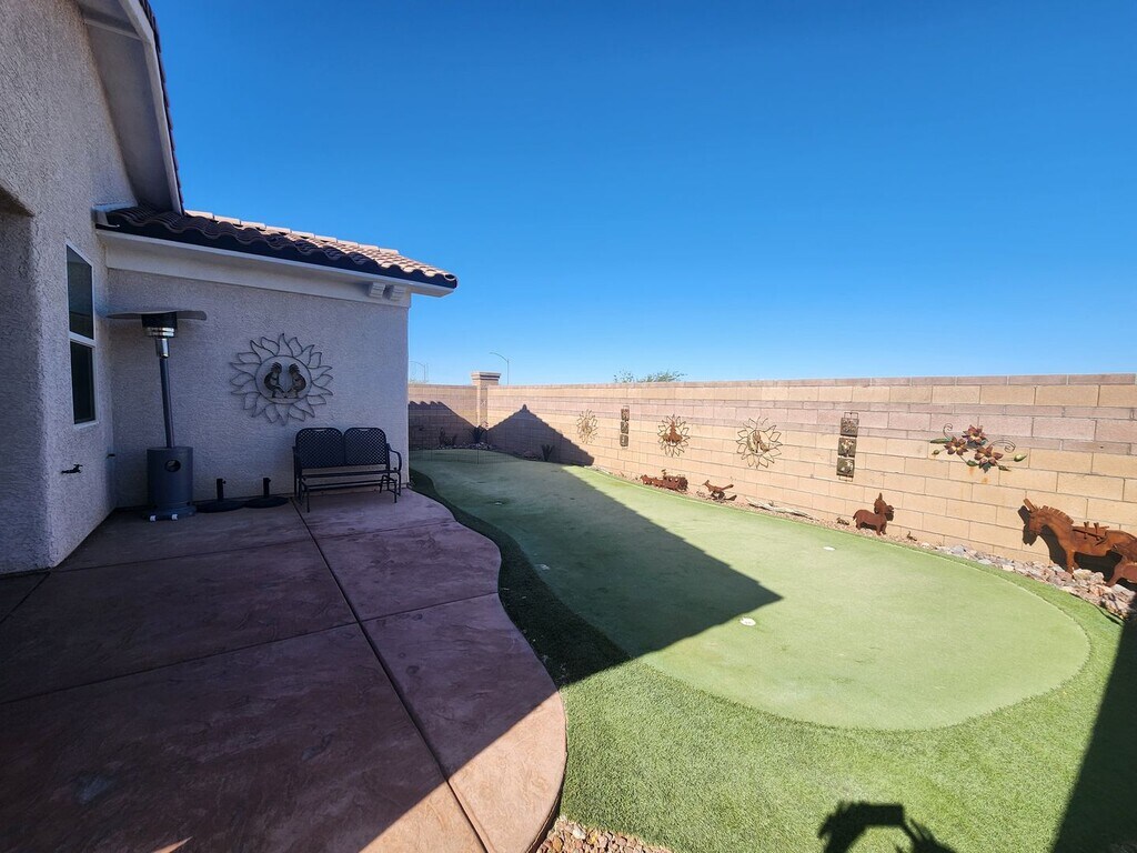 Welcome to this stunning 2-bedroom, 2-bathroom home located in the vibrant community of Laughlin, NV. This property boasts a split floor plan, offering ample space and privacy. The large primary suite has a spacious bath that includes dual sinks, tub and shower as well as large walk in closet. The kitchen is adorned with abundant cabinetry and counter space, large pantry, stainless steel appliances, granite counters, and an island with seating perfect for entertaining. The outdoor space is a true oasis with a covered patio, putting green, and a courtyard, perfect for enjoying the Nevada sunshine. The home is beautifully landscaped and features large windows with plantation shutters, allowing for plenty of natural light while maintaining privacy. The neutral paint and ceiling fans add a touch of elegance to this already impressive home.a spacious family room opens to a covered patio and putting green. The property is situated on a corner lot, fully fenced with a block wall for added privacy. The 2-car garage provides plenty of space for vehicles or storage. The home also includes a washer and dryer for your convenience. This property truly has it all, don't miss out on this gem in Laughlin. Available Now.