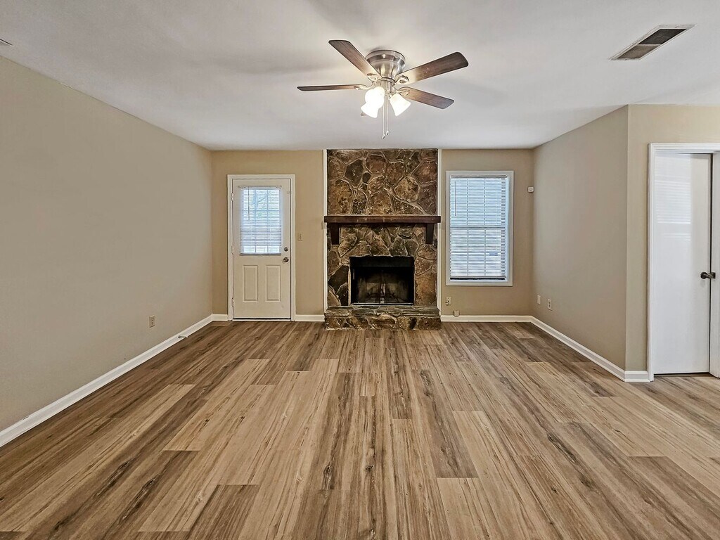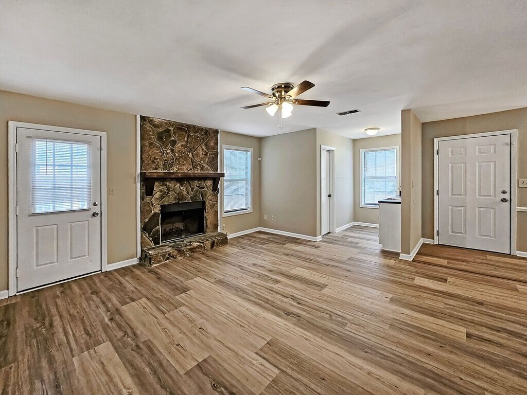 Housing Vouchers Accepted. Nestled in Marietta's bustling heart, this 2-bedroom, 2.5-bathroom flat offers convenience just off South Cobb Drive, mere minutes from key destinations. Situated in Timber Creek Estates, enjoy swift access to Marietta Square, Truist Park, Cumberland Mall, Town Center Mall, 120 Loop, I-75, I-285, Vinings, and Cobb Parkway. Positioned on a corner lot, this flat is close to an array of amenities including restaurants, shops, grocery stores, parks, and excellent schools. Recently renovated, this spacious flat is part of a duplex building and features a private front entrance leading into the main living area. The open-plan layout boasts sleek finishes such as new laminate flooring, fresh neutral paint, updated lighting, new blinds, and more. A step-in foyer welcomes you into the heart of the home—the oversized living room with a cozy fireplace, access to the private side porch (ideal for grilling), and abundant natural light. The sizable dining room accommodates a table for 8 or more, complemented by chair railing and a charming chandelier. The galley-style kitchen is equipped with white appliances, laminate counters, white cabinets, and bright overhead lighting. The laundry closet, located at the back of the kitchen, easily accommodates a full-size washer and dryer with additional space. The two bedrooms are conveniently located down the hall, opposite each other for privacy. Both rooms feature spacious closets and en-suite bathrooms, making this layout perfect for roommates. The private side porch is surrounded by woods and there is a large storage shed attached. Off-street parking has room for 2 cars and is at the front of the unit. Housing Vouchers accepted. Tenant pays all utilities. Application, tenancy requirements, and pet policy at