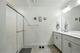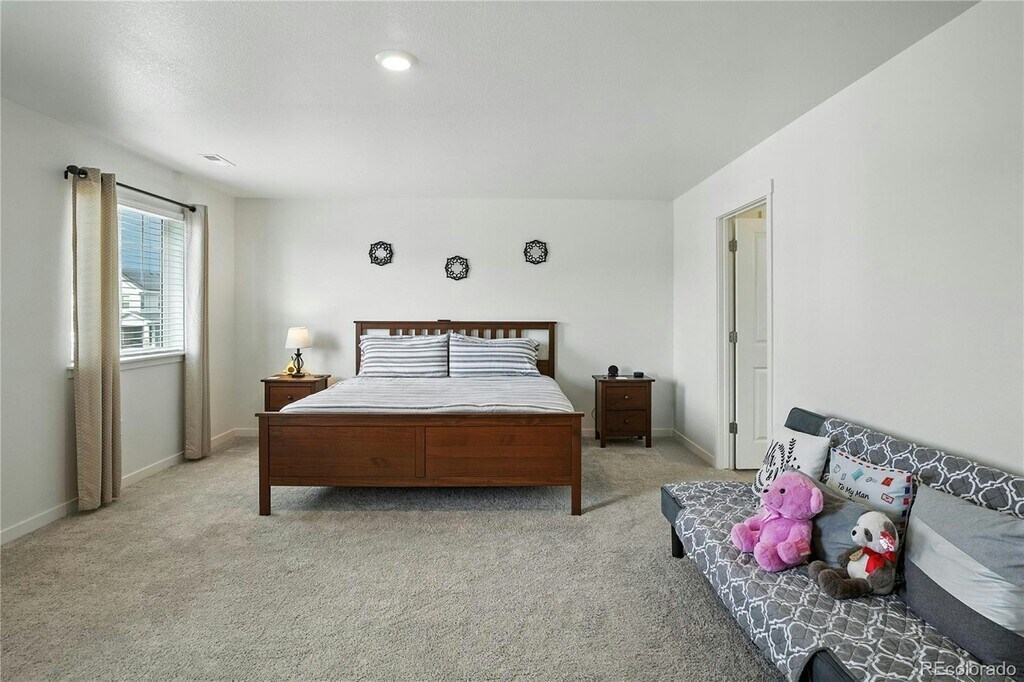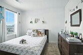 Step into generous space and thoughtful design in this stunning five-bedroom, three-bath residence with an extra-large garage built to keep up with today’s lifestyle. The interior offers an airy, welcoming floor plan where the main living area connects smoothly with the kitchen and eating space, creating a natural hub for gatherings or relaxed daily living. A bedroom and full bathroom on the first floor add flexibility, ideal for visitors, remote work, or multi-generational needs. The upper level features a spacious primary suite that feels secluded and serene, offering a quiet retreat away from the remaining bedrooms. Throughout the home, you’ll notice refined details such as crisp cabinetry with decorative trim, polished stone countertops, and durable wood-style flooring covering much of the lower level. The kitchen comes complete with modern stainless appliances, including a gas cooktop, dishwasher, and built-in microwave. Smart technology is seamlessly integrated, with features that include connected speakers, a smart thermostat, app-controlled lighting, keyless access, and a video-enabled entry system. Additional highlights include air conditioning, an on-demand water heater, a fully enclosed yard, and professionally maintained front landscaping for easy curb appeal. Set within the vibrant Harmony neighborhood, residents enjoy access to exceptional community amenities, including a resort-style swimming pool with slide, soaking spa, dog-friendly areas, recreational courts, and expansive green spaces perfect for outdoor enjoyment. This home offers more than just a place to live—it delivers comfort, convenience, and an elevated everyday experience.