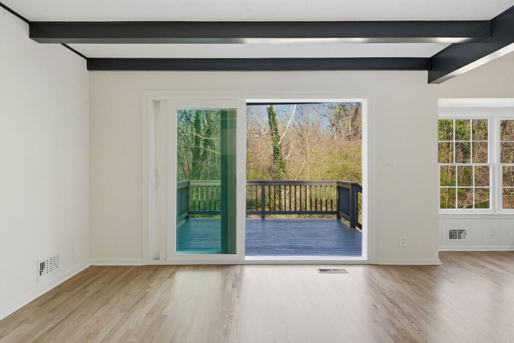 Completely renovated down to the studs,this 3 bedroom,2.5 bath brick ranch in Marietta has been rebuilt with today's standards in mind and is located just minutes from I-575. Nearly everything inside is new,including a redesigned kitchen with updated cabinetry,countertops,and brand-new appliances,along with fully renovated bathrooms featuring new vanities,tile and fixtures. New hardwood floors run throughout the main living areas,and the entire interior has been freshly painted for a clean,cohesive feel. The floor plan includes both a formal living room and a separate den,offering flexible space for work or relaxation. A newly constructed deck extends the living area to the private outdoors,creating a great spot for entertaining or unwinding. With updated systems,modern finishes,and a solid brick exterior,this home offers the feel of new construction within an established Marietta setting close to shopping,dining,and major roadways. MLS ID 7721841