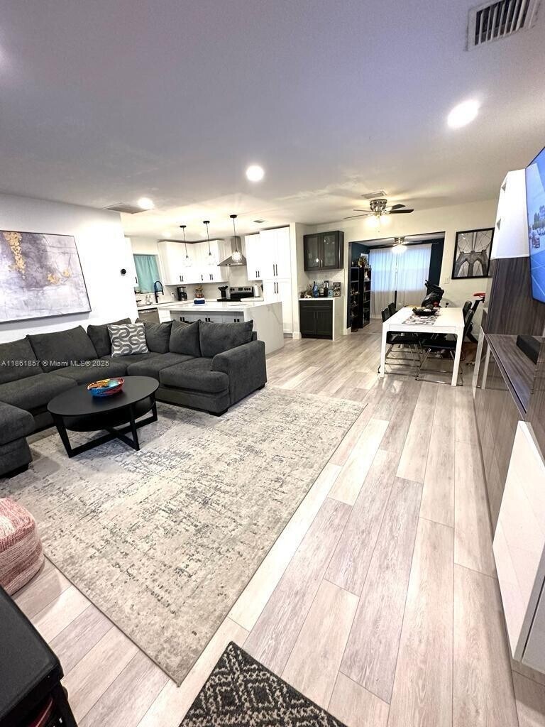 Beautiful single-story open layout home with 3 bedrooms and 2 full bathrooms. South facing home with plenty of sunlight throughout the day. New AC with smart thermostat and new ductwork. Completely updated with new modern white waterproof SPC floors throughout. The bright shaker style kitchen includes quartz countertops and full backsplash, recirculating hood, and stainless-steel appliances. The large island provides great workspace for cooking and lots of storage in addition to the large pantry. Master bedroom has blackout shades and private bath with marble walk in shower. Spacious, fenced backyard with pavers, a storage shed and a covered porch. Located minutes from I95 and 10 minutes from downtown Fort Lauderdale. Family friendly neighborhood close to shopping, gym, and parks.