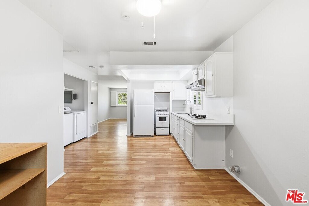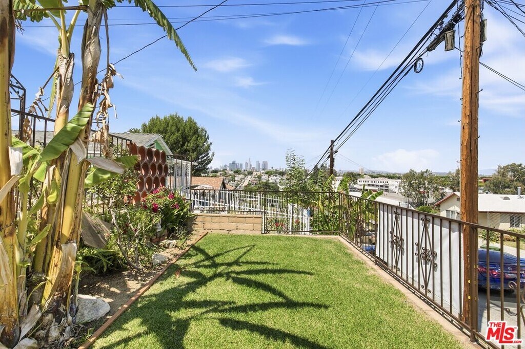 Wake up to stunning views of the city and mountains from this charming 3 bedroom top floor unit! The rooms are generously sized and have freshly painted walls and laminate flooring with carpet in the bedrooms. The primary bedroom features a built-in desk and updated bath. The other bedroom has a walk-in closet and shares an en-suite bath with the third bedroom. All bedrooms come with a ceiling fan/light combo. The sunny kitchen has a fridge, gas range, oven, and plenty of counter space with a breakfast bar. There's even a dedicated dining area! You'll have central air/heat and in unit washer/dryer. Top floor unit has access to front yard area, while the bottom floor has access to the backyard. You can also enjoy having TWO dedicated driveway parking spaces.*Please note, the mobile shelf in the kitchen can be removed if you'd like.*This place checks all the right boxes!Located on a quiet hilltop street in Boyle Heights with easy access to Downtown, the 5, 10, and 101. Sorry, no pets. MLS# 26712213