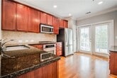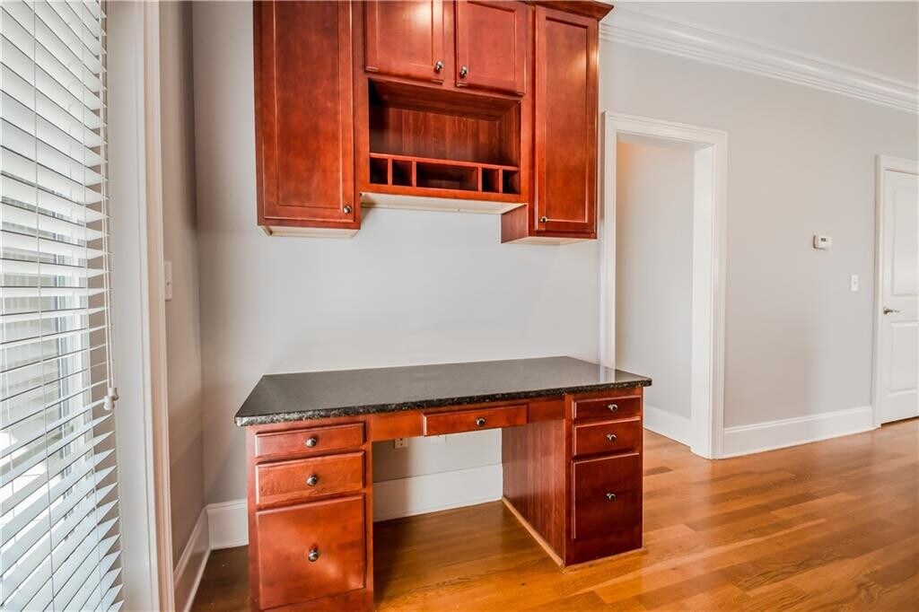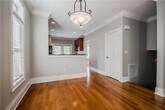 Beautiful Townhouse with Hardwood Floors (main),Brand New carpet in Bedrooms. Neutral Paint-throughout. Granite Counters/Breakfast Bar,Dark Cherry Oak Cabinets,Stainless Steel Kitchen Appliances,Abundance of Natural Lighting,Balcony off Kitchen,Fireplace,Contemporary Lighting,Wood Blinds,Stackable Washer/Dryer. Separate shower/tub in Master. Lower level Bedroom/Office has private Bathroom (Shower only). One Car Garage. Fantastic Location; Walk to Big Creek Greenway,Shopping,Restaurants. Quiet subdivision with lake & dog park next door. MLS ID 7708628