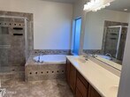 Amazing opportunity to live in the desirable Fireside Norterra community. This 4 bedroom,2 1/2 bath home has a great room w/soaring ceiling,a spacious family room open to the eat-in-kitchen w/tons of storage & stainless steel appliances,gas range,kitchen island & lots of counter top space. Primary bdrm on the first floor has bath w/separate tub & shower & double sinks. Well organized & spacious walk in closet. Rest of bdrms and full bath w/double sinks on 2nd floor. Bdrm 2 has walk-in closet. All three secondary bedrooms are very spacious with generous closets. Interior was painted in March & carpets were professionally cleaned. Tandem 3 car garage. Back yard is desert landscape with covered patio and pavered uncovered patio. Backs to greenbelt.