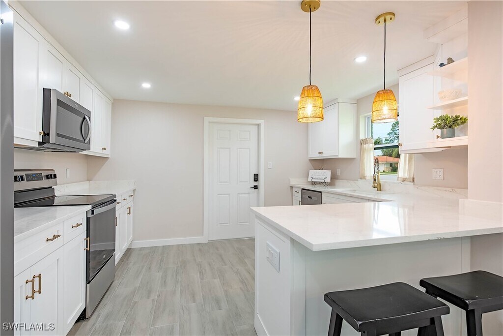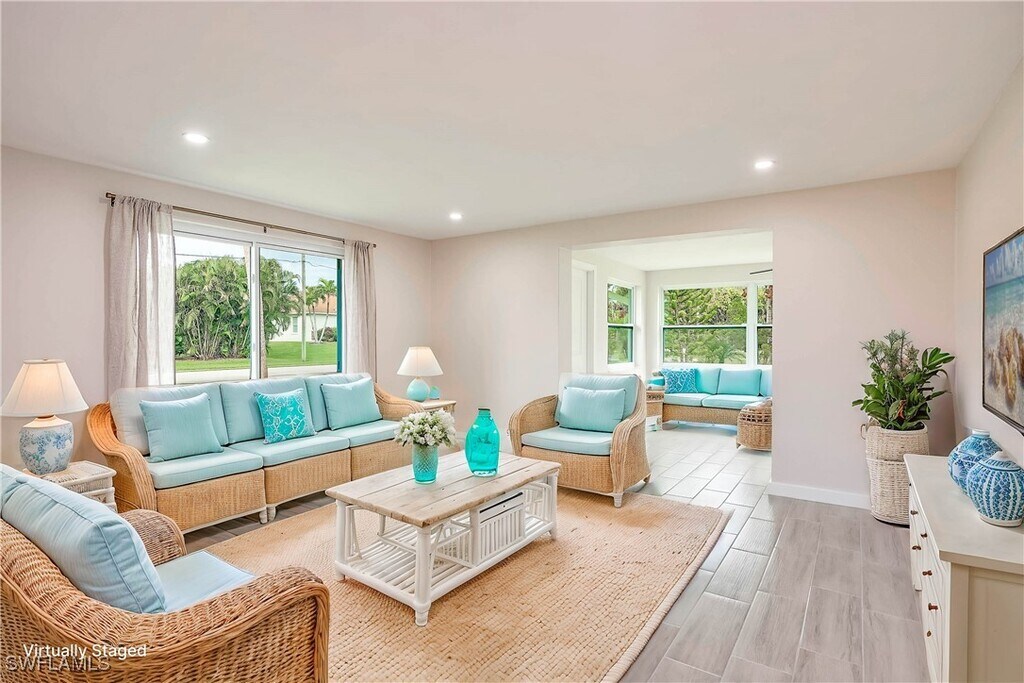 Step into this newly and beautifully remodeled two bedroom plus den,plus flex space room,two and a half bath home that offers a blend of modern convenience and thoughtful design. The open kitchen features sleek finishes and brand-new appliances,making it perfect for entertaining. The living area flows seamlessly into the den with an abundance of natural light. Brand new impact glass windows and a new metal roof provide both safety and energy efficiency. Additional highlights include attached carport parking,an air-conditioned laundry room with ample storage,and additional exterior covered parking with 30-amp service and water/sewer,perfect for an RV or boat. The air-conditioned flex space room can easily be transformed into a bedroom,office,or hobby room to suit your needs. The property boasts a double lot,offering an expansive outdoor space that includes a large,well-maintained backyard,ideal for relaxing and enjoying the quiet private setting. This home is perfect for anyone looking for a spacious,updated property with plenty of room for outdoor enjoyment.