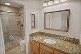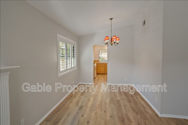 Welcome to this stunning single-story home in Saugus featuring 4 bedrooms and 2 bathrooms. This property offers wonderful curb appeal, a long driveway, and a spacious family room with a cozy fireplace and mantel. Enjoy wood shutters, high ceilings, and plenty of natural light throughout. The home has been freshly painted in custom neutral tones and features brand-new vinyl flooring. The open-concept layout includes a dining area and a family room with a built-in TV niche and shelving, along with ceiling fans throughout. The kitchen is equipped with recessed lighting, custom cabinetry, a brand-new dishwasher and microwave, and a window overlooking the backyard. All four bedrooms are generously sized, including the primary suite with an attached bathroom featuring a granite countertop vanity and a beautiful walk-in glass-tiled shower. The hallway bathroom has been upgraded with a modern vanity and a shower/tub combination. (Closet doors will be installed before tenant moves in) Additional highlights include a 2-car attached garage with built-ins, washer/dryer, and EV readiness with a 220V/40A plug conveniently located near the parking area. The private backyard features a covered patio, sitting area, and grassy yard — perfect for entertaining or relaxing. This desirable community offers access to a pool, spa, parks, and tennis courts, and is conveniently located near top-rated schools, restaurants, Central Park, and shopping. Move-in ready and full of charm!