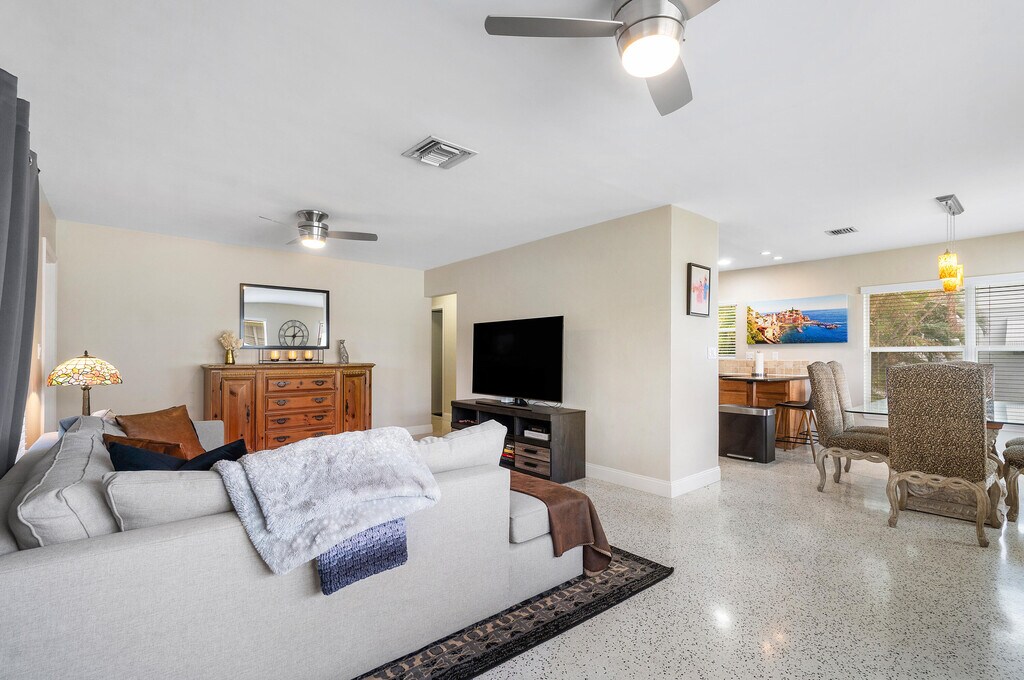 Live in the center of Lighthouse Point in this bright and updated 2 bedroom,2 bathroom villa. This home has peace of mind upgrades including a new roof and all impact windows. The private screened patio gives you a quiet outdoor space for morning coffee,grilling,or working from home. The floor plan offers a comfortable living area,dining space,and kitchen that connects to the patio. Both bedrooms are well sized and the primary has an en suite bathroom. Terazzo floors throughout make upkeep easy. You are steps to the community pool and just a short walk to Nauti Dawg restaurant. Publix and Whole Foods are only half a mile away,which makes day to day living simple and convenient. This location puts you minutes from marinas,parks,and waterfront dining. The home is move-in ready to go MLS ID R11144559
