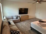 Amazing, fully furnished, 4 bedroom 2.5 bath, corner lot home in Pine Glen in Saint Cloud FL less than 20 miles from Lake Nona's Medical City. Stunning modern kitchen with stainless steel appliances, quartz countertops, tall cupboards, and island with dual sink & extra seating. Enjoy the open floor plan with large dining room table, spacious living room, big screen tv, upgraded tile floor, ceiling fan and sliding glass door leading to the outdoor patio and back yard. Also downstairs is the half bathroom and direct access to the 3 car garage. Upstairs you will find another living area with a big screen tv and arcade game. All 4 oversized bedrooms are upstairs, include ceiling fans, and big screen TVs. Down the hallway you will find the shared bathroom and large laundry room. At the end of the hallway is the luxurious primary bedroom. This room has impressive size with a large sofa / sitting area and amazing ensuite bathroom including walk-in-shower, garden tub, separate toilet room, and massive closet. The home also has a water softener system. There is a Next Gen 5th bedroom downstairs with separate access that is not included in the rental. It is used sparingly throughout the year by the homeowner when on vacation. The homeowner will not have access to the rental home or garage. The community amenities include tennis, pickleball, basketball, playground and dog park. Conveniently located near shopping, dining, major highways, and the Orlando International Airport. Enjoy the luxury of Central Florida with is major attractions and reasonable drive to sunny beaches. Call or text for showings: Jeff Filegar Apply today at $90/ adult application fee