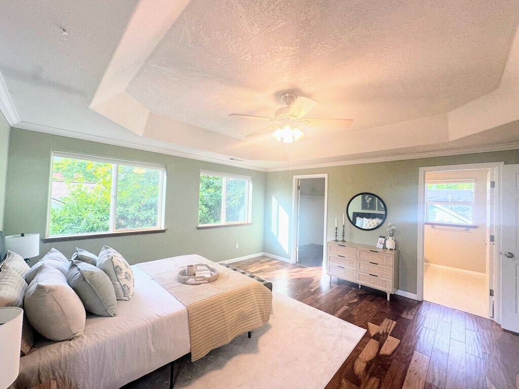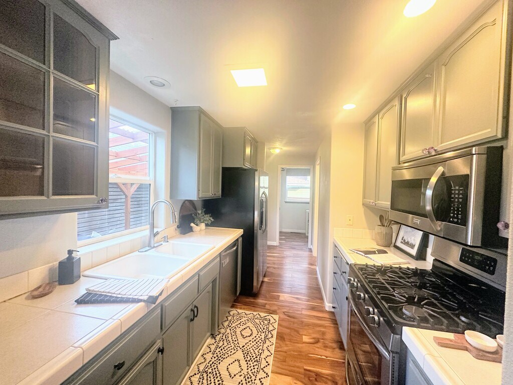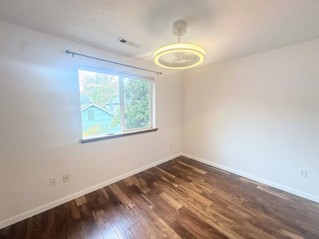 Tucked into a quiet Ashland street just blocks from SOU and Ashland High, this clean and charming 3 bed, 2 bath home offers the perfect blend of location and low-maintenance living. You'll love the rich laminate hardwood floors, functional layout, and private backyard oasis. The appliances provided include a dishwasher, a fridge, a gas stove, a microwave, & washer & dryer hook ups. The primary suite has its own private balcony—perfect for morning coffee or evening unwinding. There's a single-car garage, plus bonus space on the side for trailer or small RV parking. No HOAs, clean, simple, move-in ready, and in a location that's hard to beat. Residents are responsible for all utilties & landscaping. pets are permitted with deposit, maximum 1 No Smoking All residents must have renter's insurance within 30 days of tenancy. $45 application screening charge per person, must be over 18. $2,500 Rent/ 1 Year lease. $3,000 Security Deposit. Applicants must have a credit score of 680+ Please go by the location and then call for a showing. show contact info Thanks, Lithia Property Management.